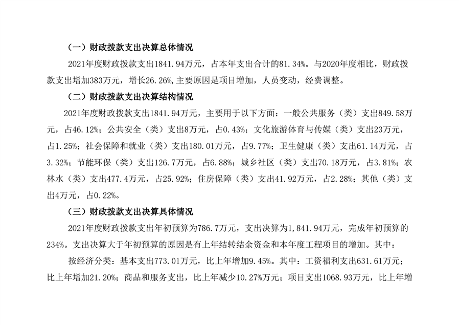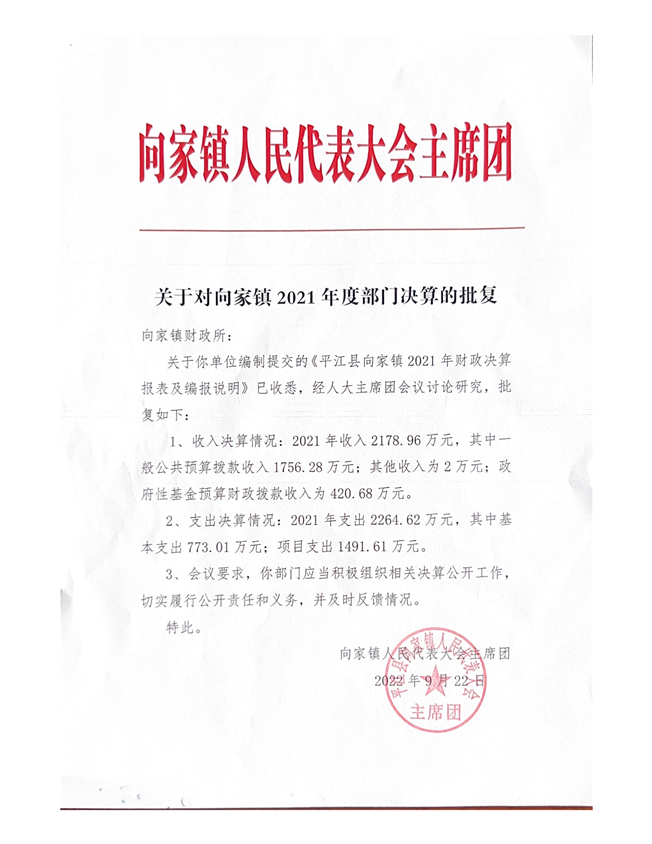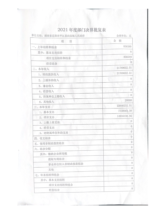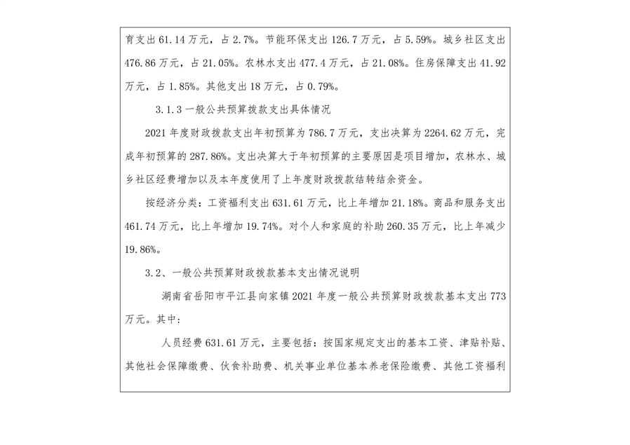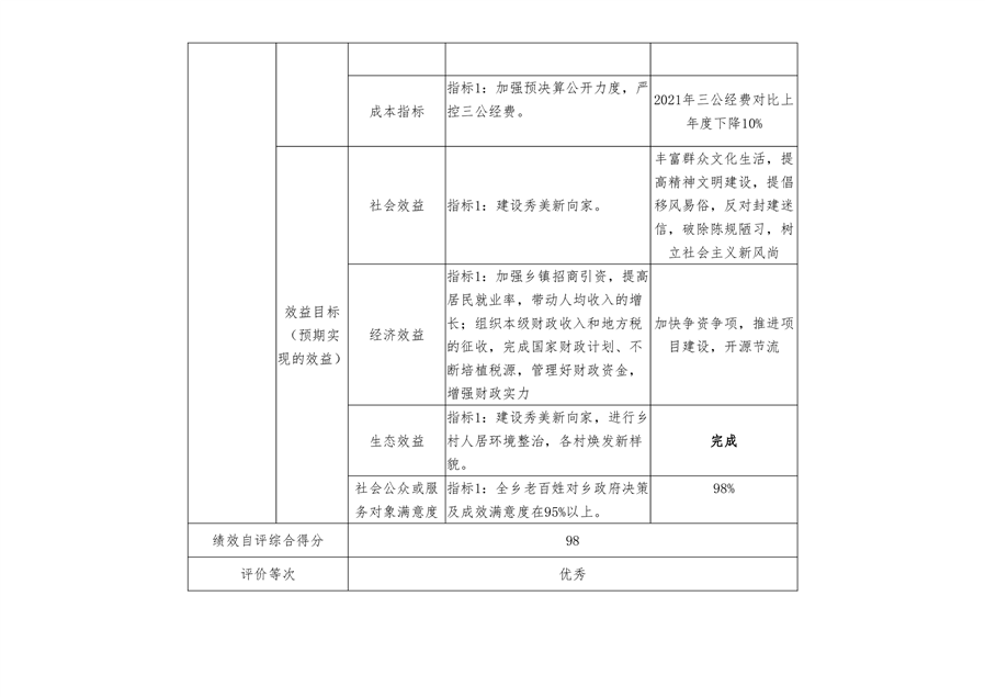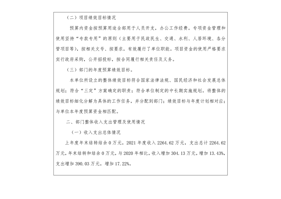 2021年度向家镇人民政府部门决算公开及部门整体支出绩效评价自评报告