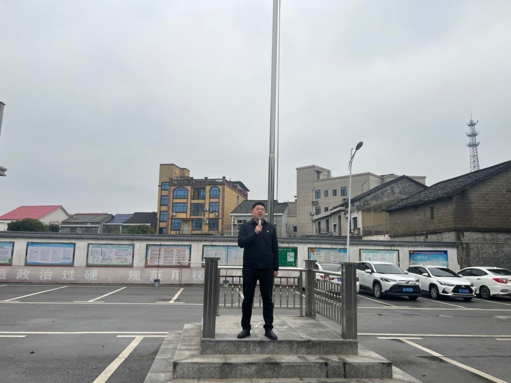 升旗仪式由党委副书记、镇长谭赛男主持。伴随着雄壮嘹亮的国歌,五星红旗冉冉升起,全体人员肃立注目、精神饱满,共同表达对祖国的美好祝福和对事业的坚定信念。