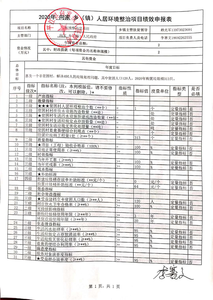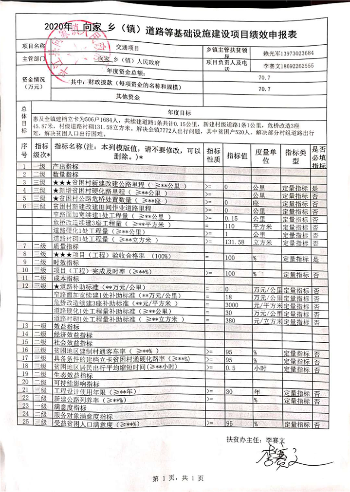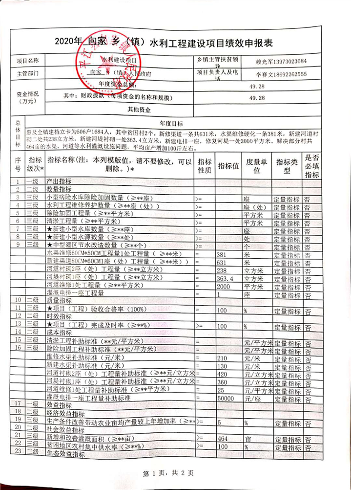 向家镇2020年统筹整合涉农资金项目库预算绩效申报(调整)