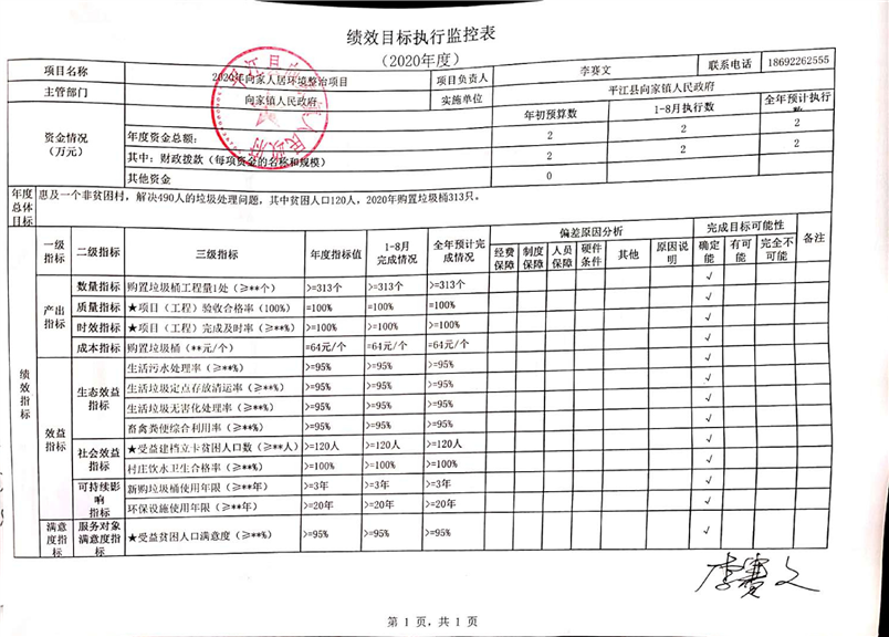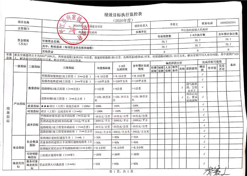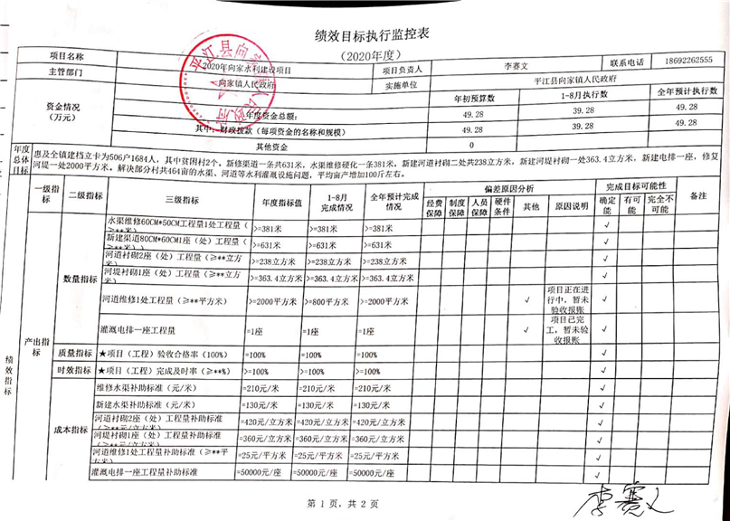 向家镇2020年统筹整合涉农资金项目库预算绩效监控