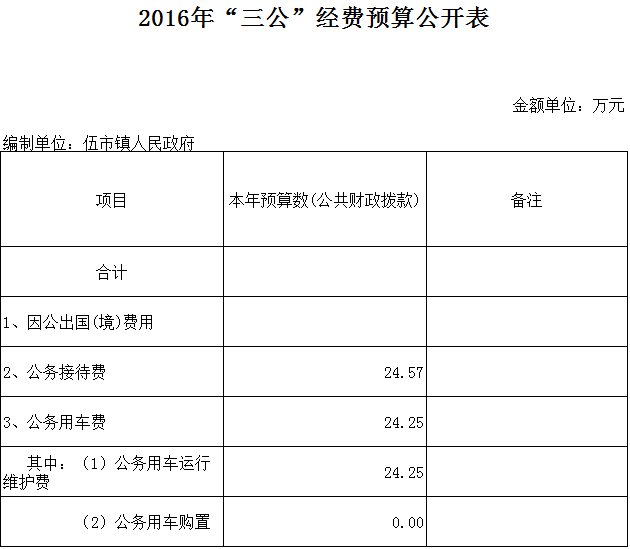 伍市镇政府2016年预算编报说明