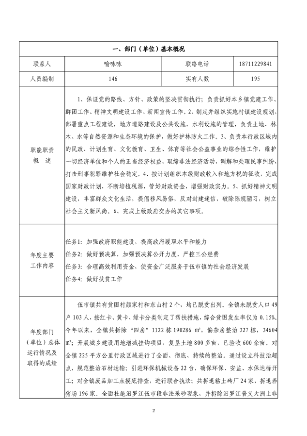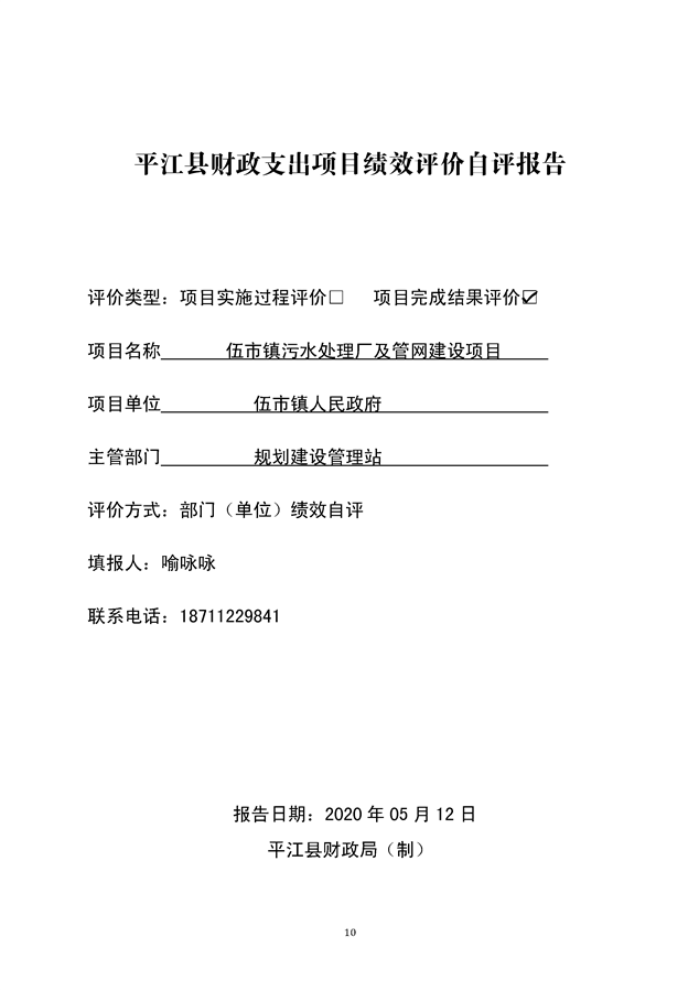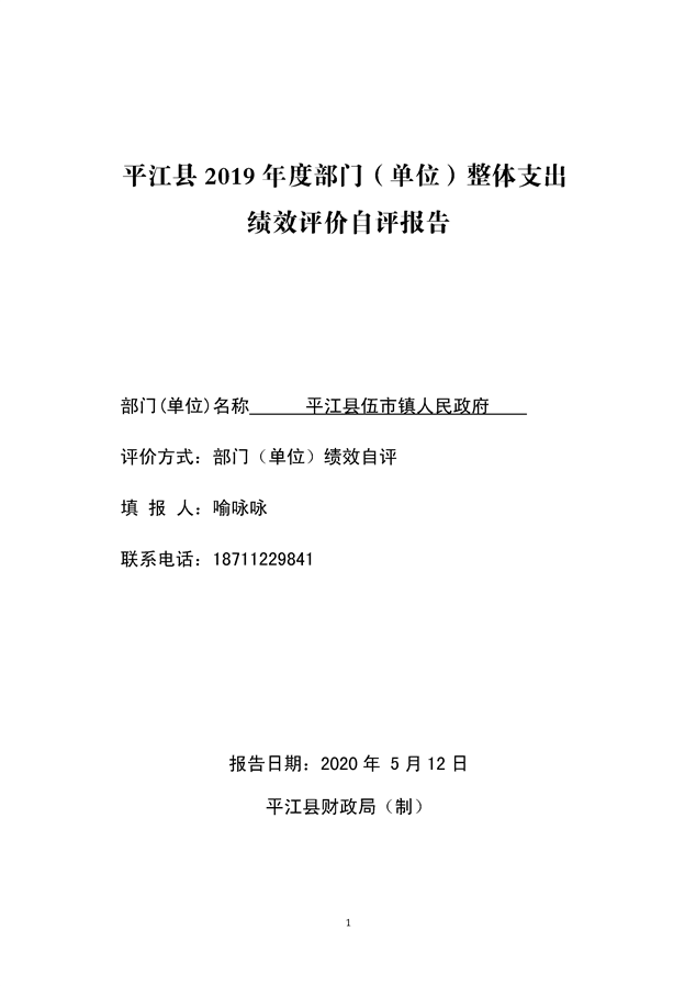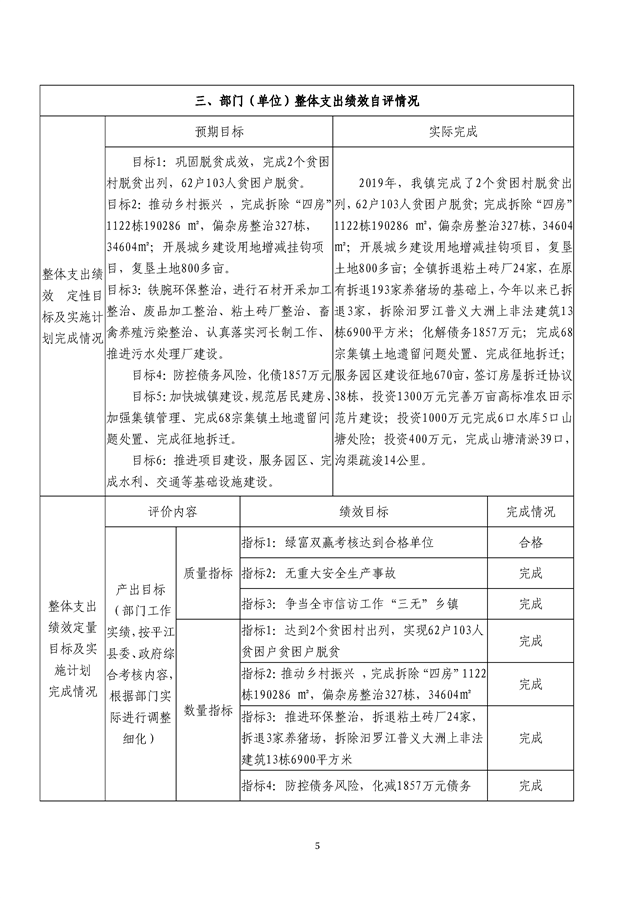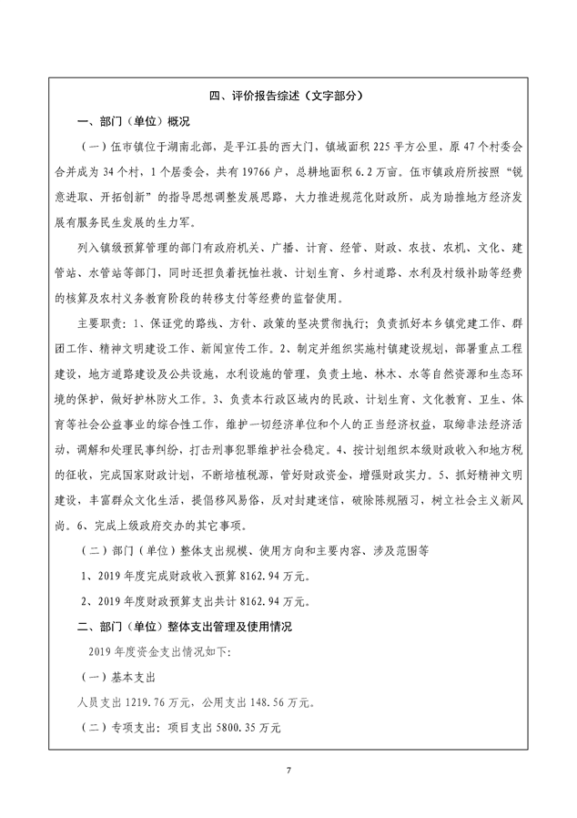 平江县伍市镇人民政府2019年绩效自评报告