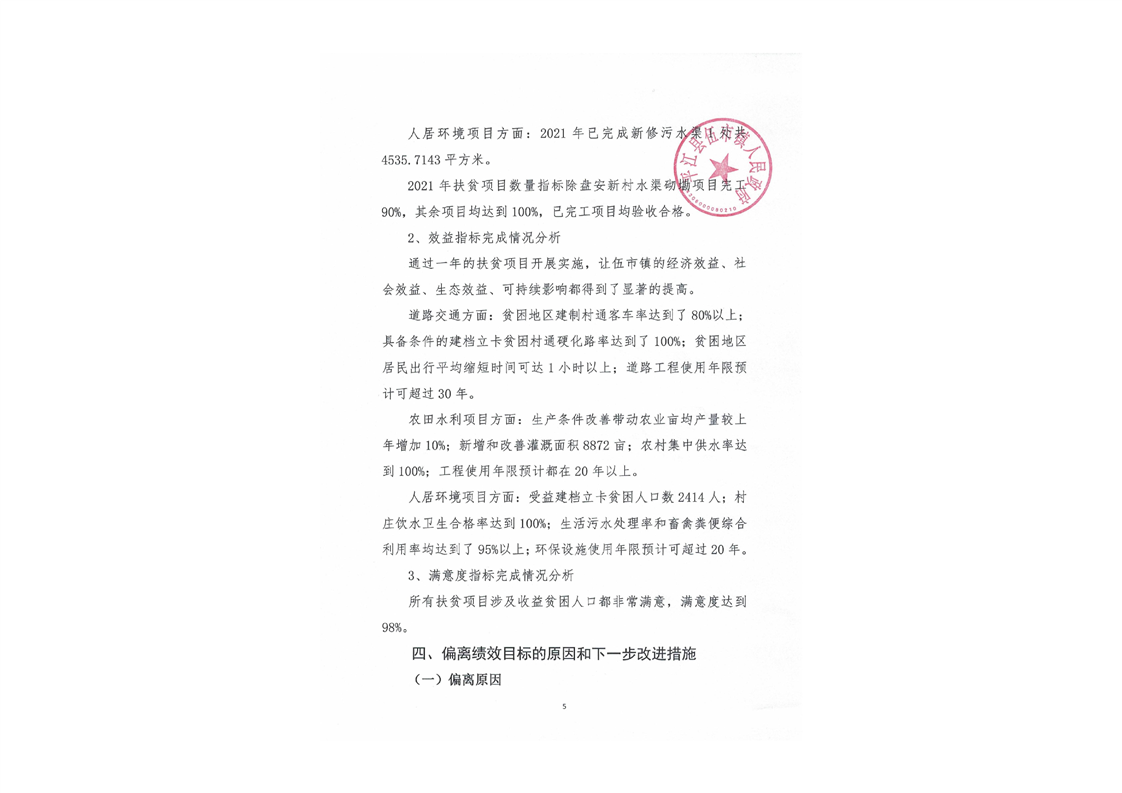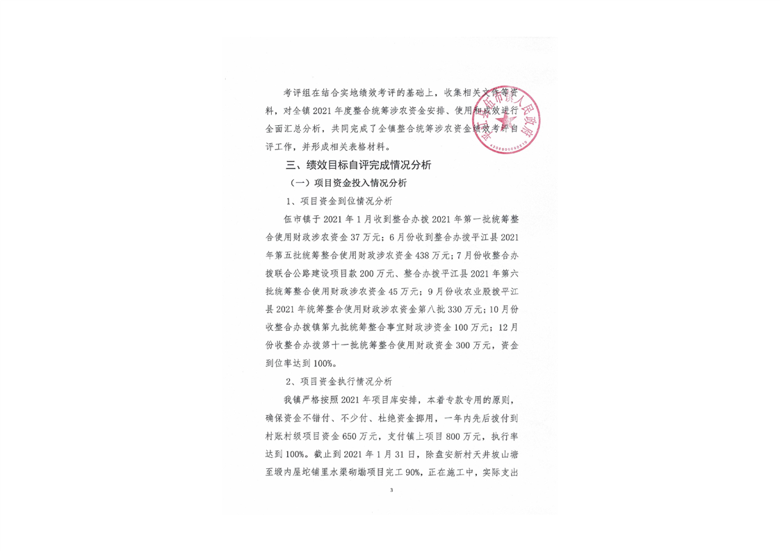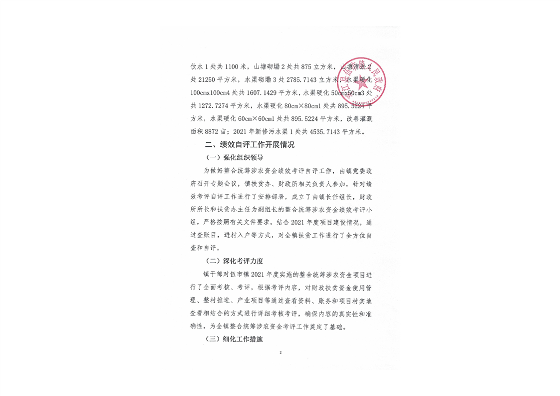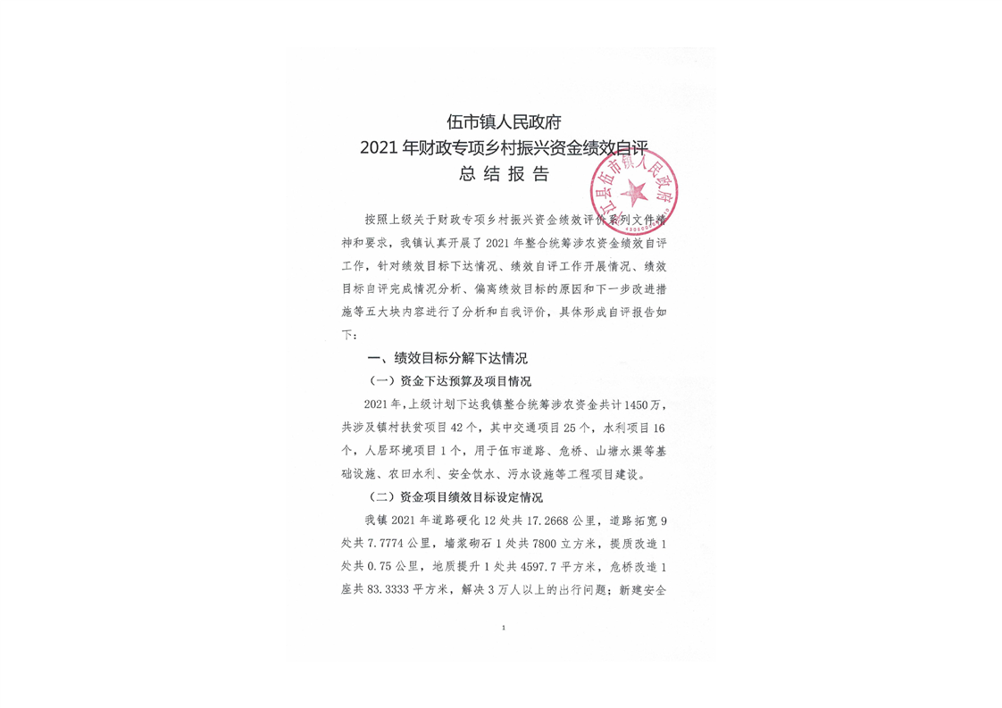 伍市镇2021年财政专项乡村振兴资金绩效自评报告