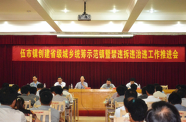 7月8日下午,伍市镇召开了创建省级统筹示范镇暨禁违拆违治违工作推进会,各村支部书记、村主任,全体支村干部、机关干部及部门负责人共200多人参加本次会议。会议由镇长刘日新主持。
