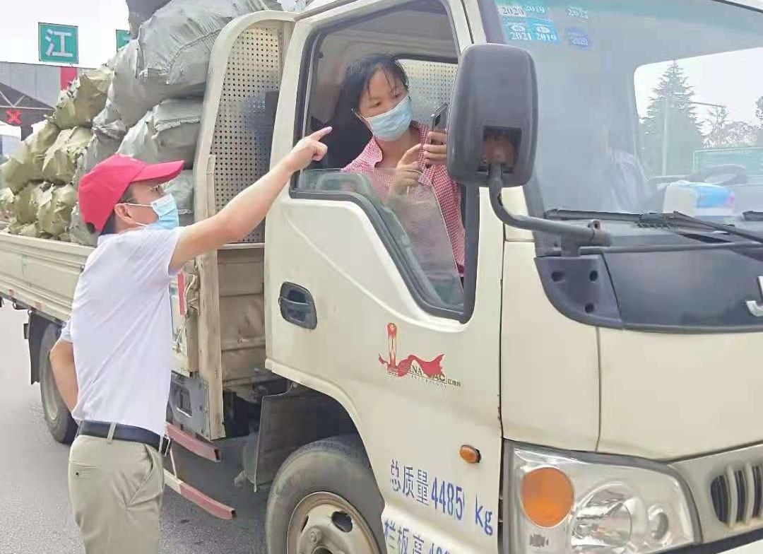 伍市镇是平江县的西大门,京港澳高速平江西出口正好位于伍市镇。在平江西出口,有一个瘦小的身影戴着口罩,顶着烈日不停地忙碌着。“您好,请您出示您的健康码、行程码、疫苗接种情况”,他不厌其烦地一辆车接一辆车的询问,还不忘和身边的同事交代一定要查看扫描后的健康码和行程码,不能只看截图,汗水滑落到眼睛了也顾不上擦去。,一天下来,查验各种类型车辆达600余辆,2000余人次。他就是伍市镇政府机关党支部党员——潘郭梁。