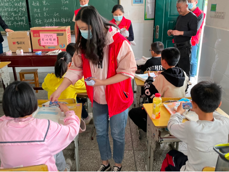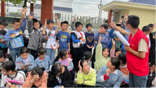 4月22日,在第27个世界读书日和第22个世界知识产权日来临之际,伍市镇新时代文明实践所关爱儿童和法治宣传志愿服务队的志愿者们前往时丰坪小学、白杨小学和仁义小学,为三所边远学校的孩子们送去阅读的欢乐和绿色阅读、远离非法出版物的健康理念。