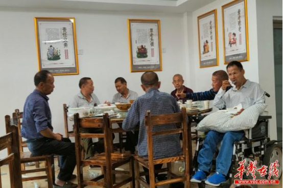 营养美味的饭菜,不仅滋养了年迈的身体,还筑起了人民群众与党和政府之间的“连心桥”,构建了农村老人养老的“幸福圈”。武岗村五保户李釆均满脸笑意推着行动不便的尹资术,这一笑让他脸上的皱纹便更加明显:“我们都好开心呢,资术坐着轮椅不方便,我以后天天推着他来这里吃饭,五保户还能吃上这么丰盛的饭菜、过上幸福的晚年,我们做梦都想不到啊!”