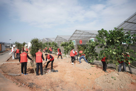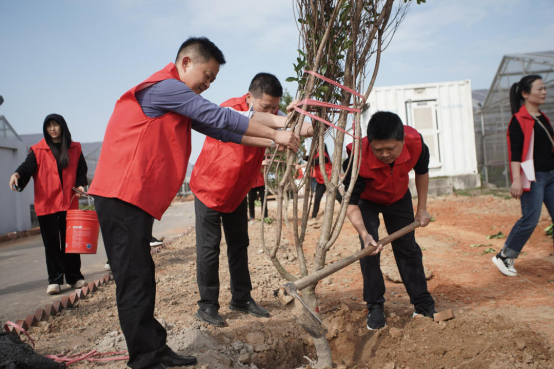 植树活动现场,全体党员干部精神饱满、热情高涨、干劲十足。在专业人员的指导下,大家三五人一组,有的挥锹铲土、有的扶树填坑、有的踏土夯实,每一道工序都严谨细致、有条不紊,默契十足。经过忙碌的劳动,一棵棵新栽种的树木亭亭玉立,为产业园再添一道靓丽的风景。