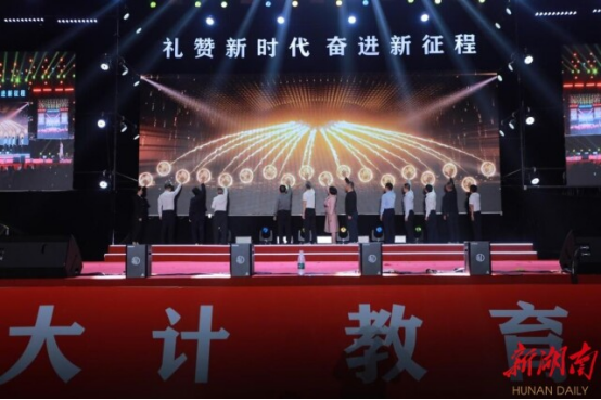日前,“礼赞新时代 奋进新征程”伍市教育基金成立晚会在平江县第五中学圆满落幕。市、县两级领导及伍市乡友共同见证。在气势磅礴、鼓乐齐鸣的《盛世欢歌》中,领导嘉宾上台将手共同举向按钮,舞台大屏幕上星光汇聚,倒计时结束点燃烟火,倍受期待的伍市教育基金会正式成立!活动现场参加观众多达1100余人,网络直播点击量高达90多万人次。