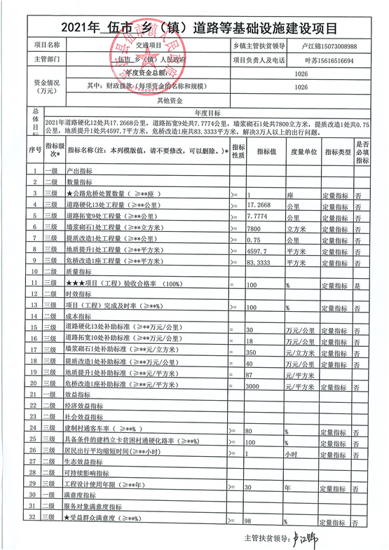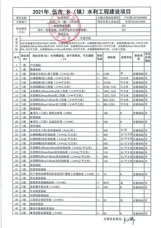 伍市镇2021年统筹整合涉农资金项目建设绩效申报表
