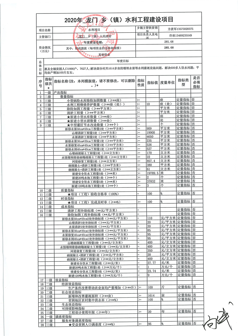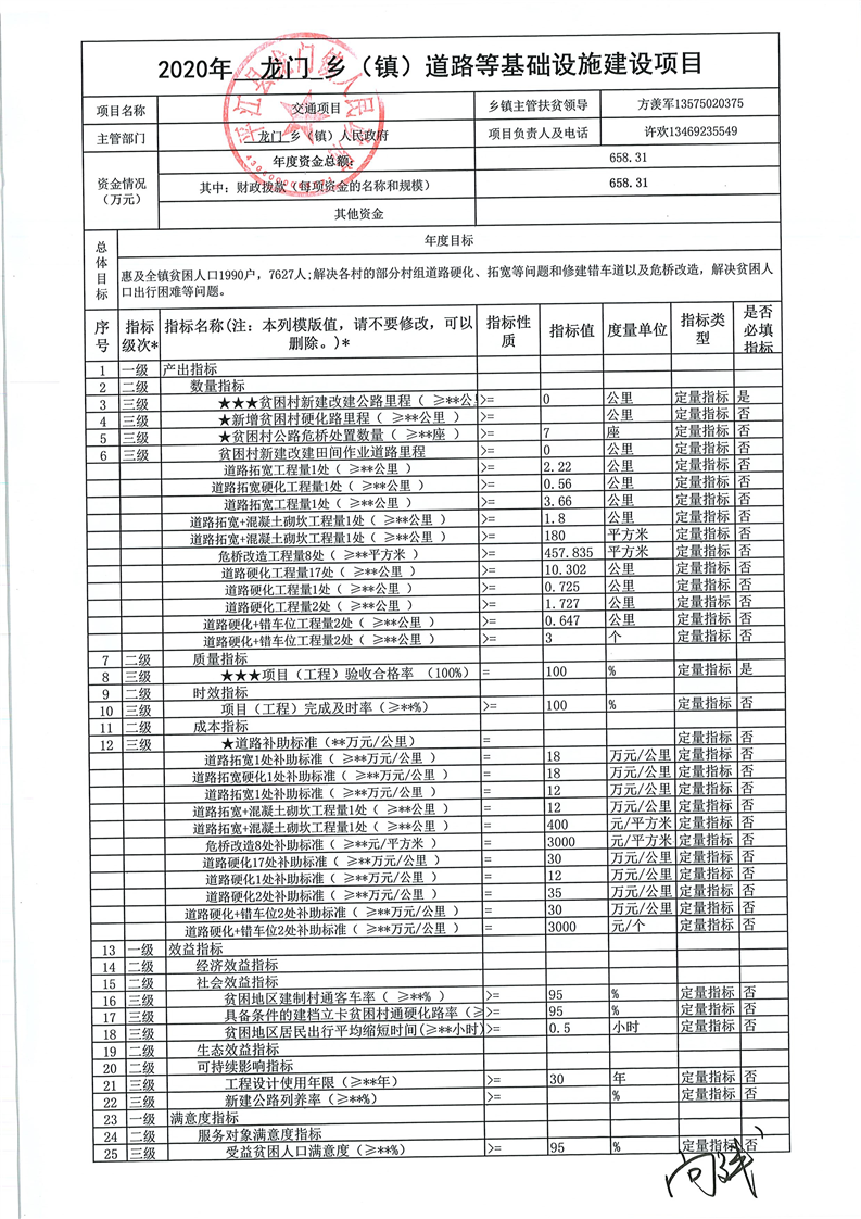 龙门镇2020年统筹整合涉农资金项目库预算绩效申报