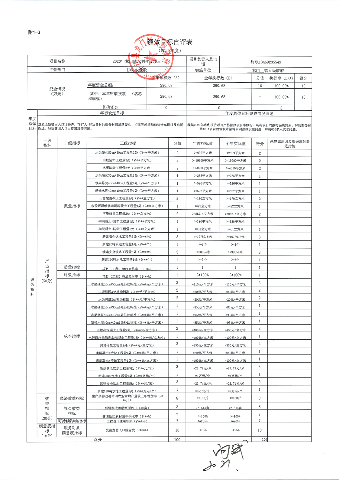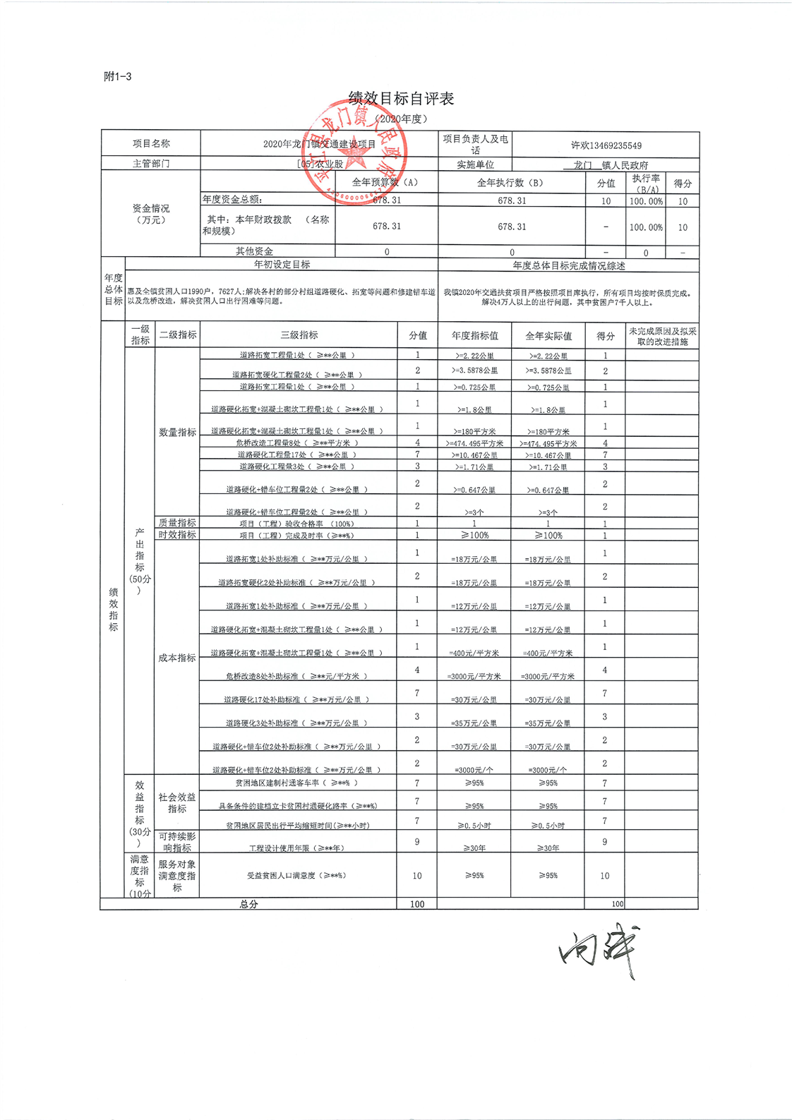 龙门镇2020年扶贫资金项目绩效目标自评表
