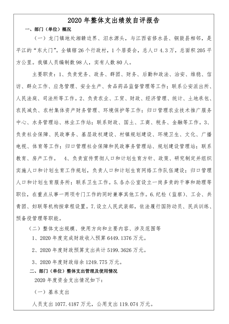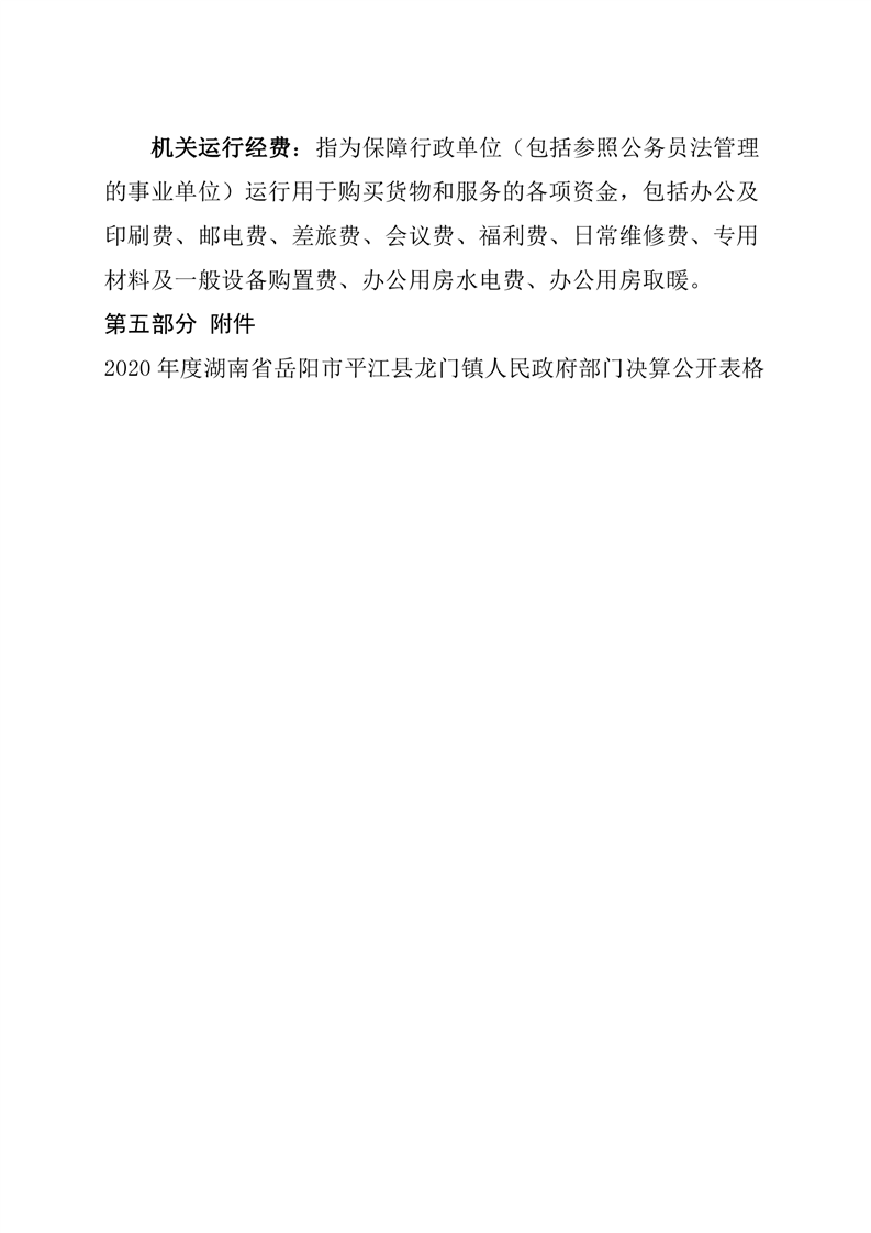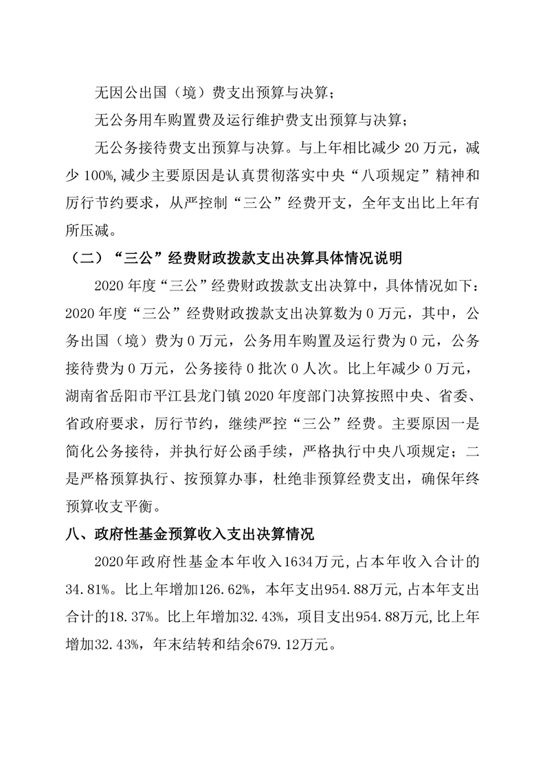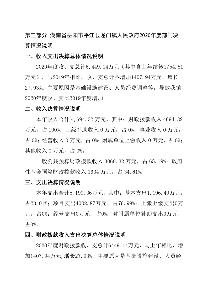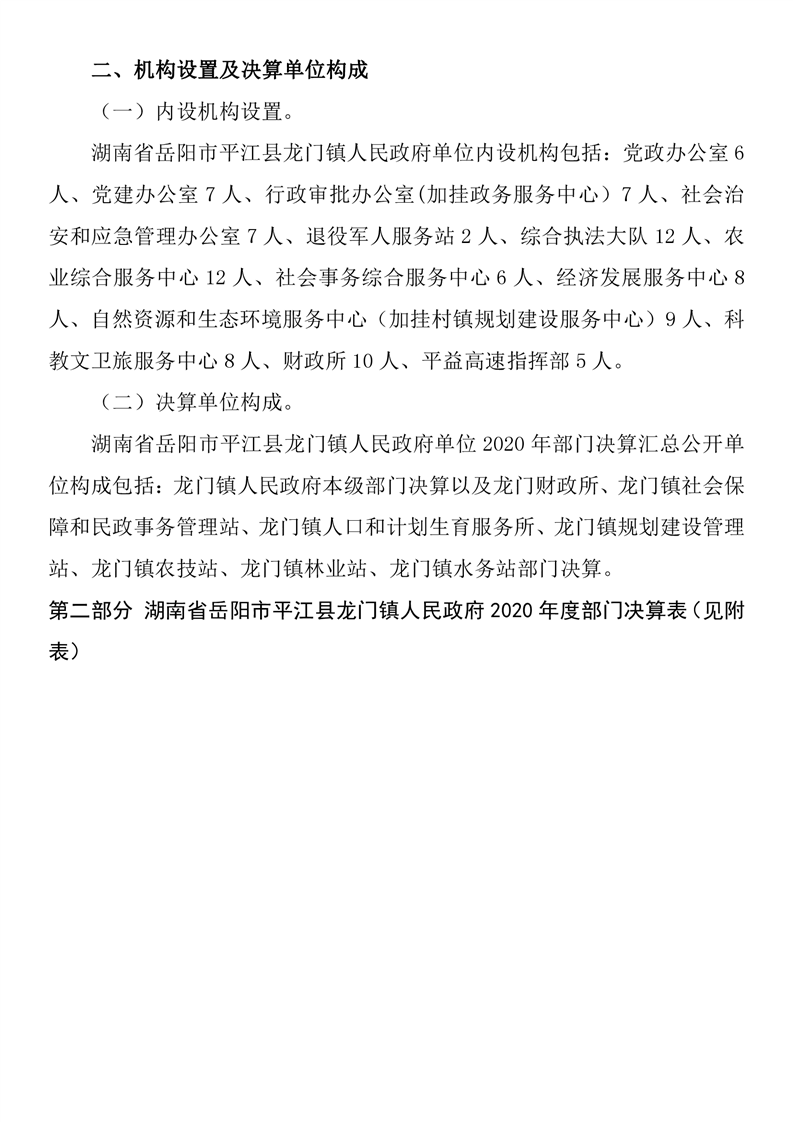 平江县龙门镇人民政府2020年度部门决算编报说明