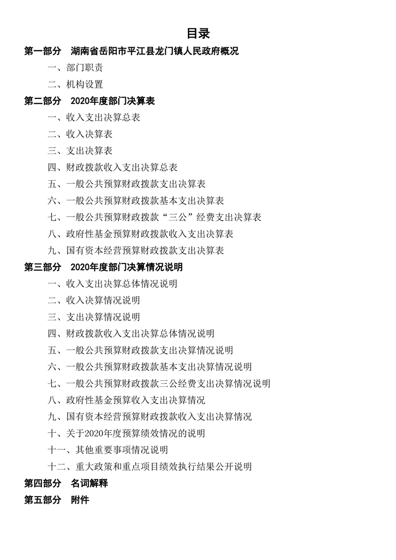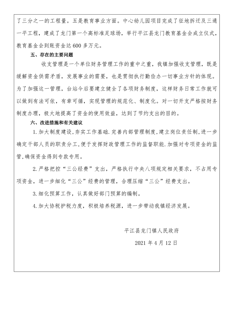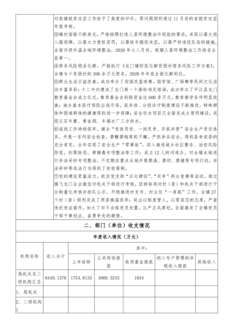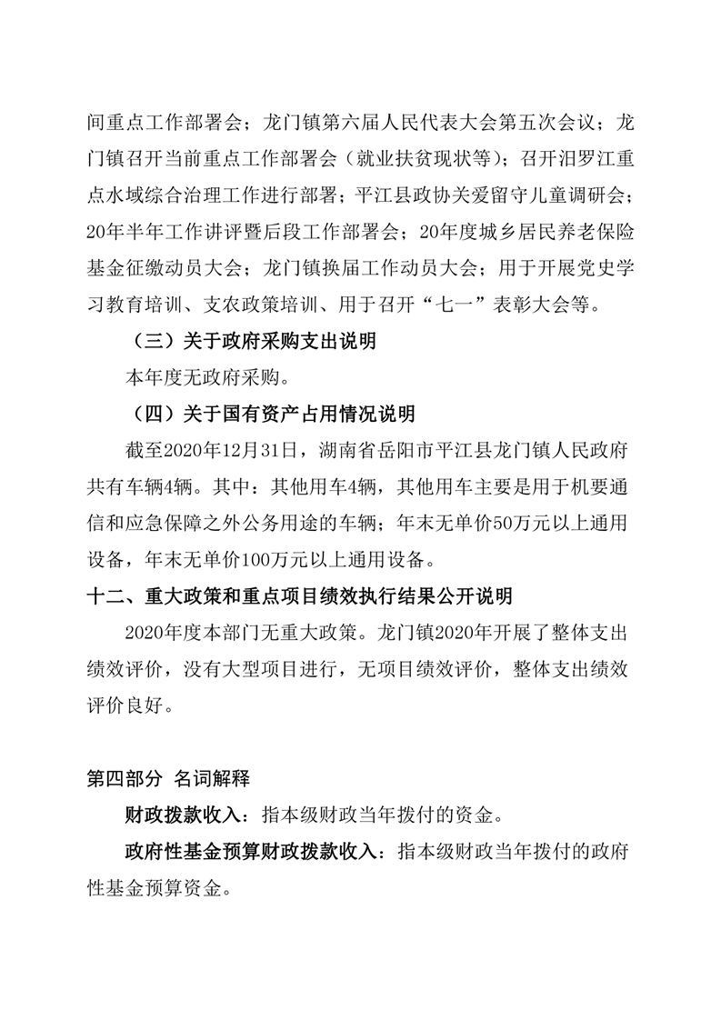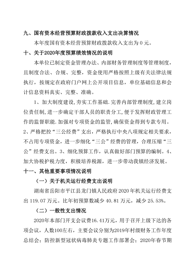 平江县龙门镇人民政府2020年度部门决算编报说明