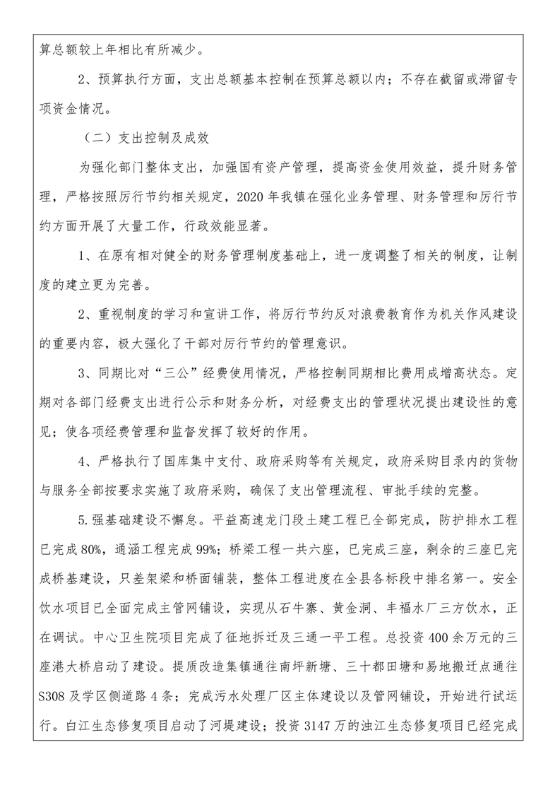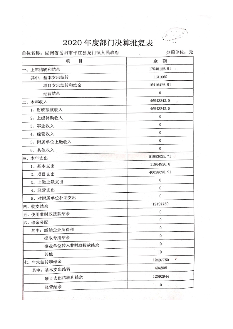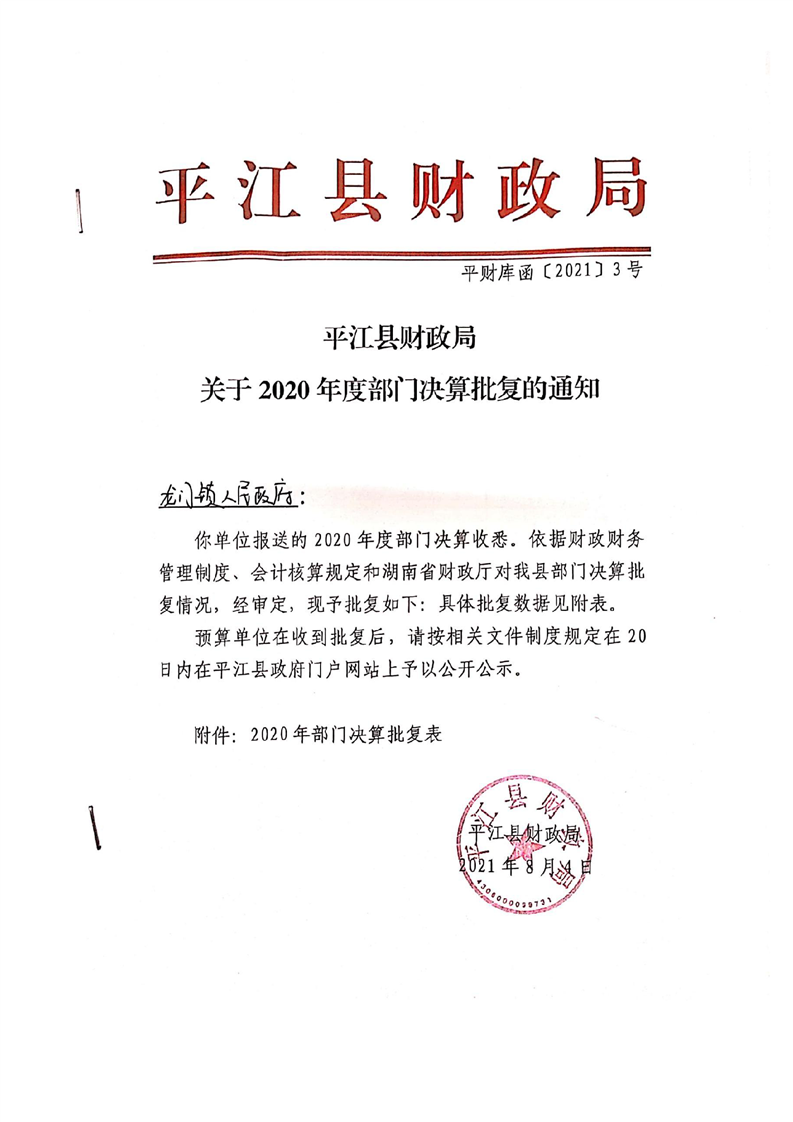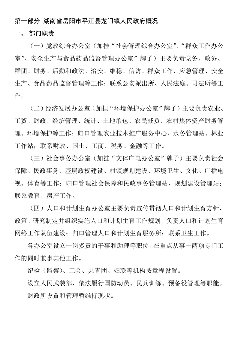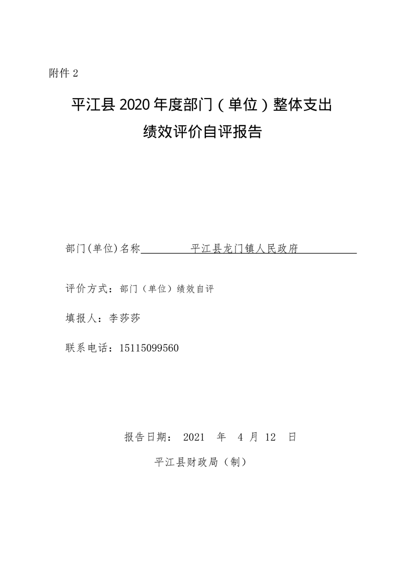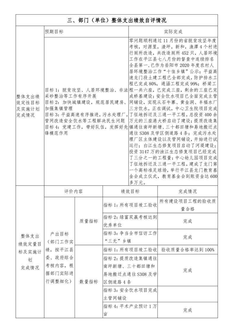 平江县龙门镇人民政府2020年度部门决算编报说明