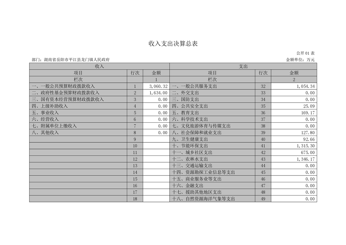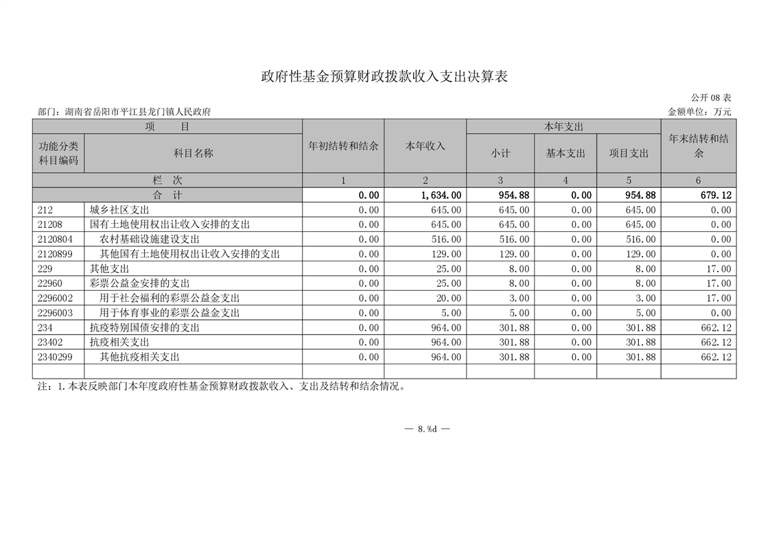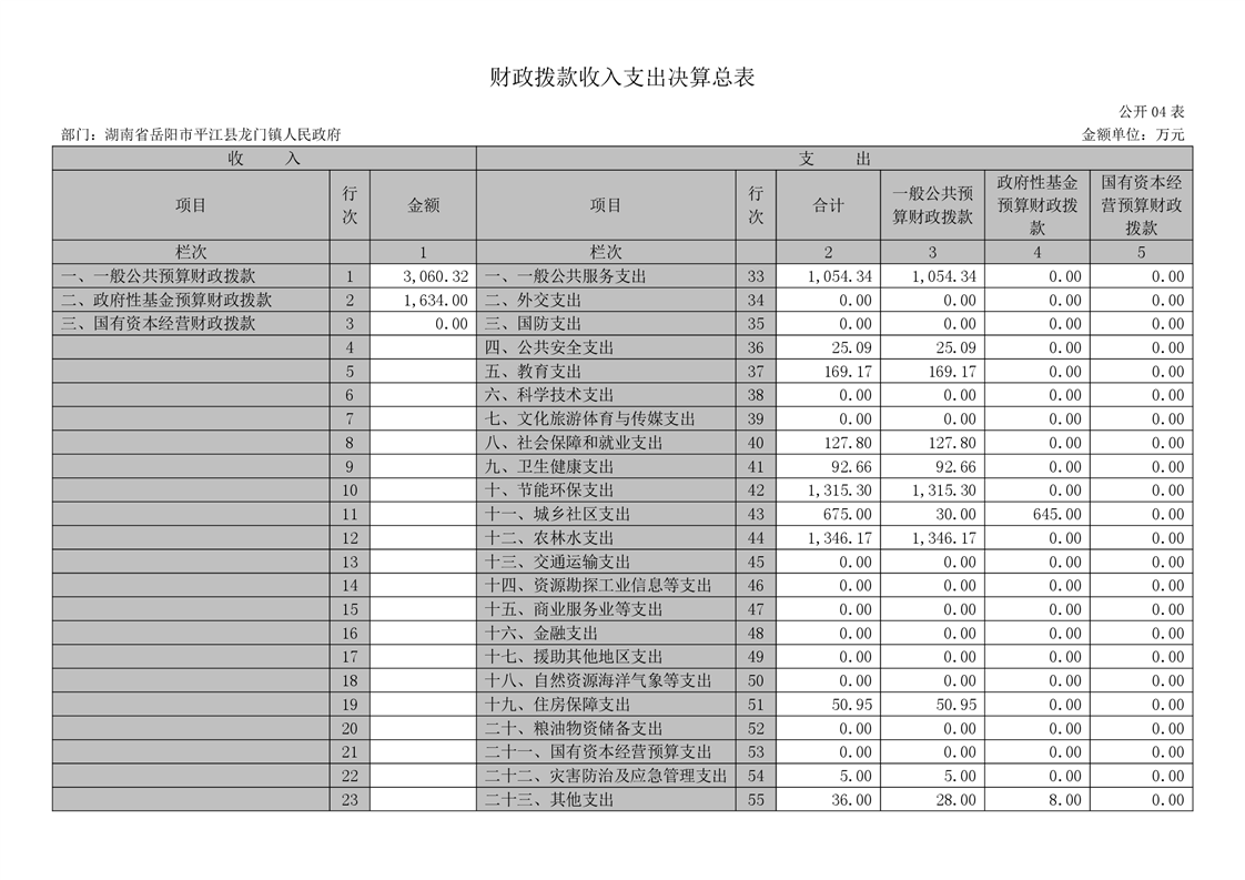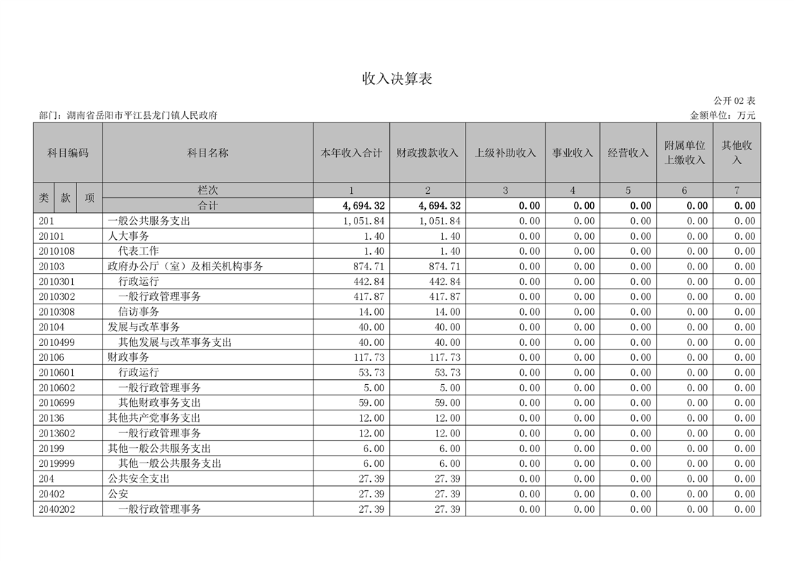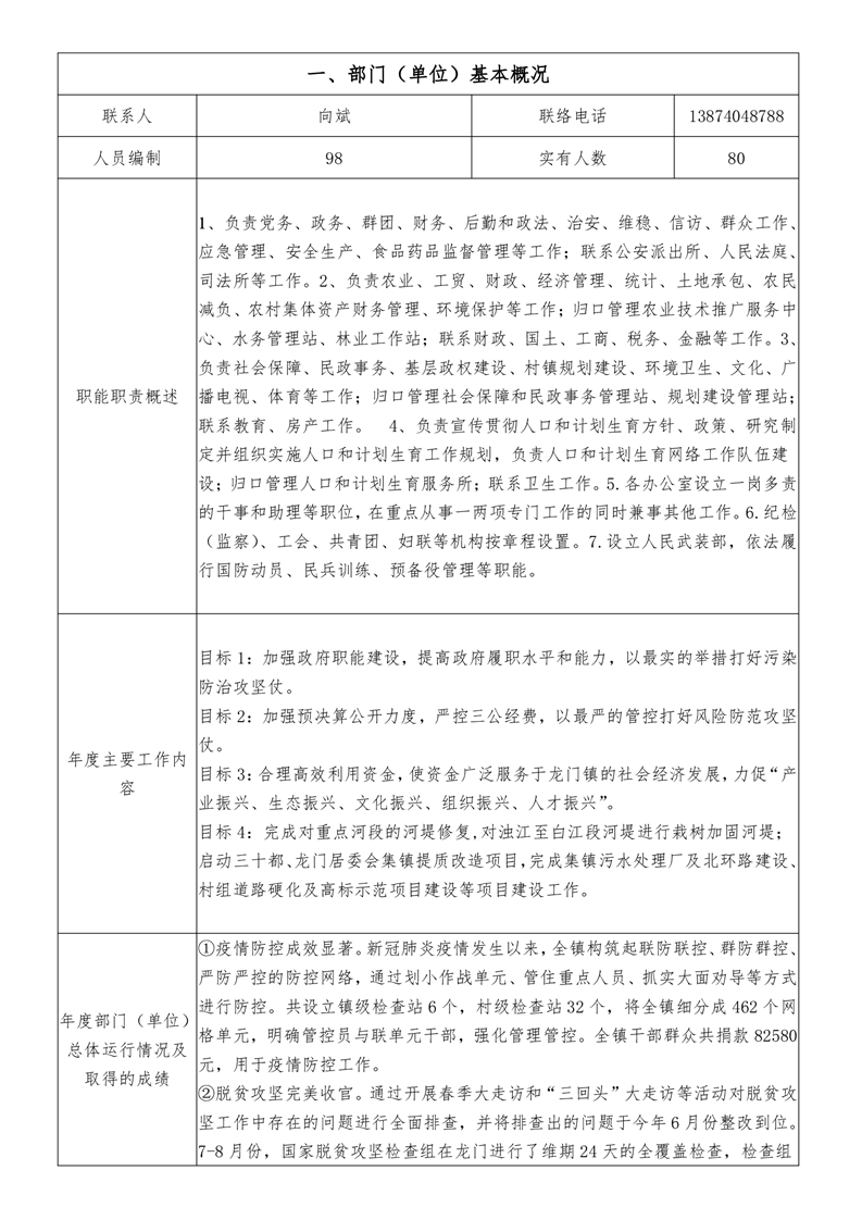 平江县龙门镇人民政府2020年度部门决算编报说明