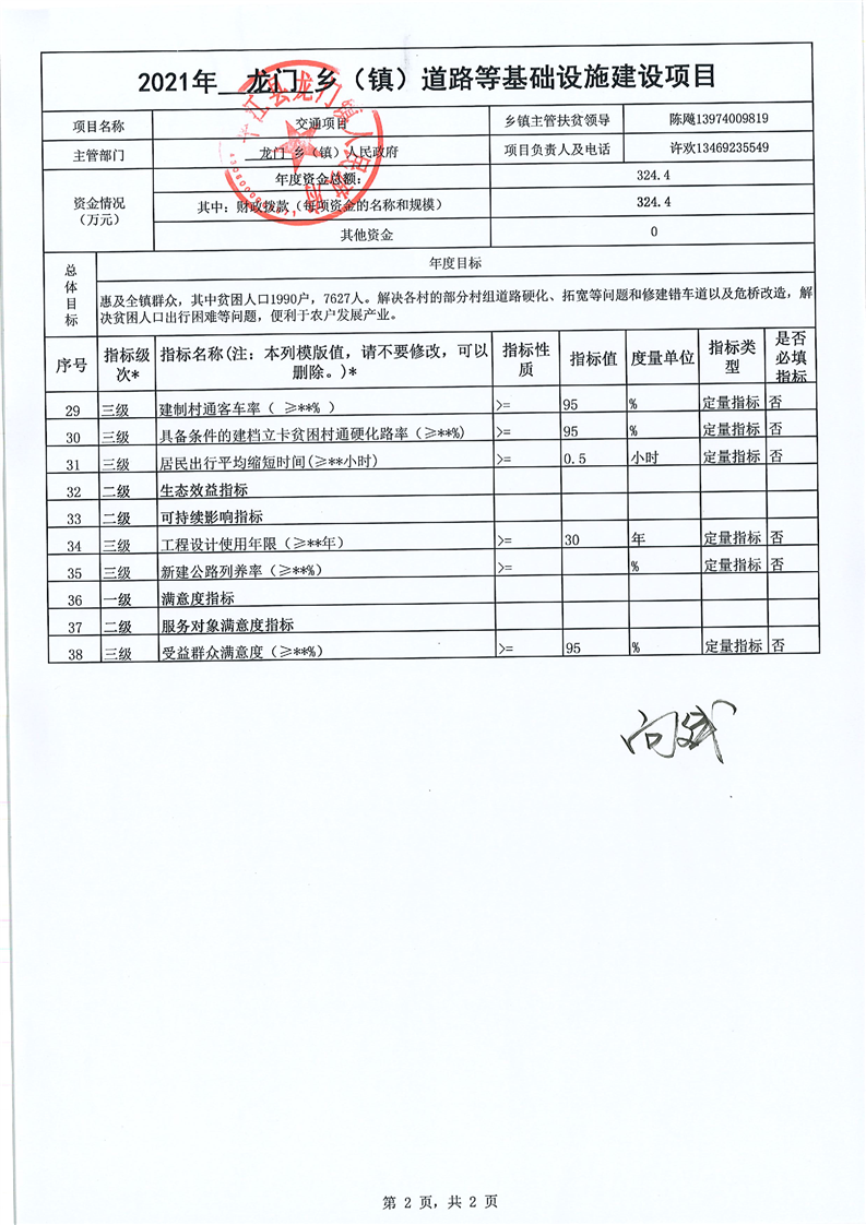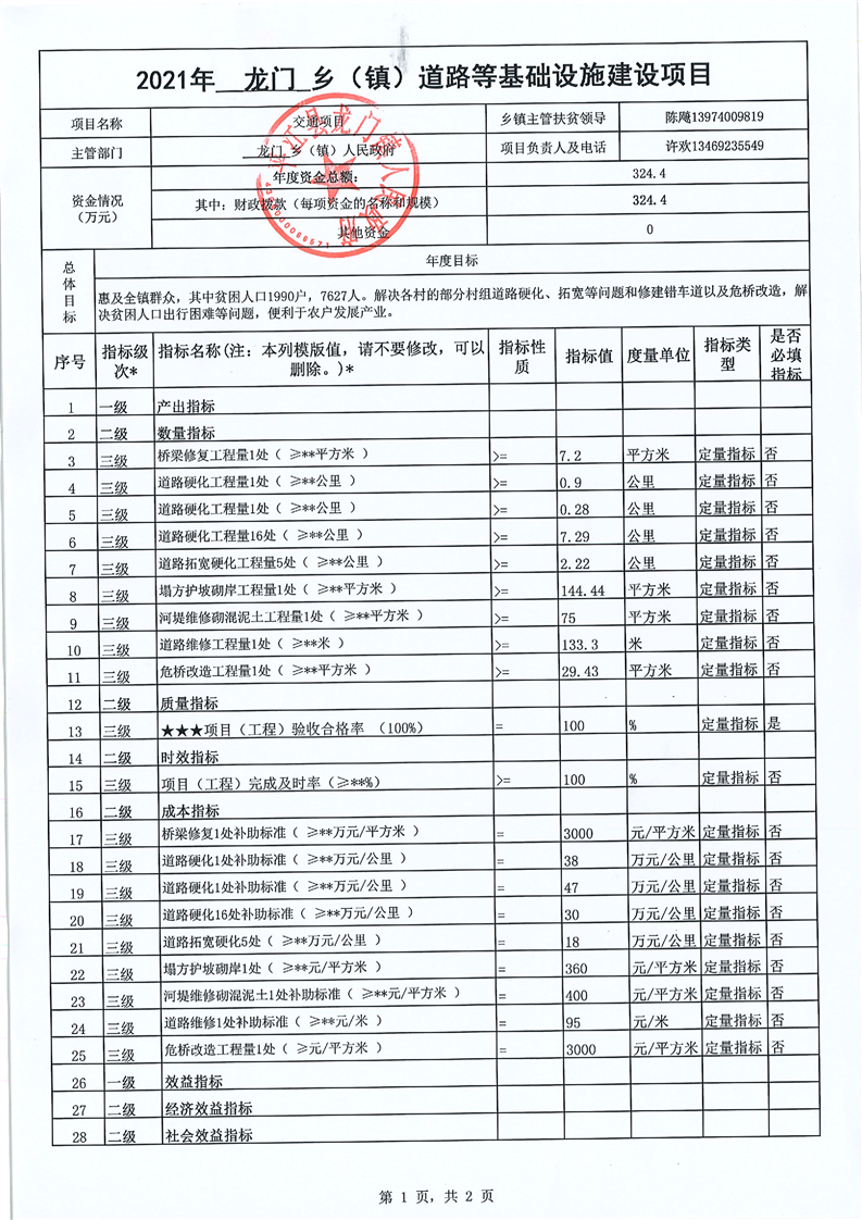 龙门镇2021年财政扶贫项目全过程绩效申报表