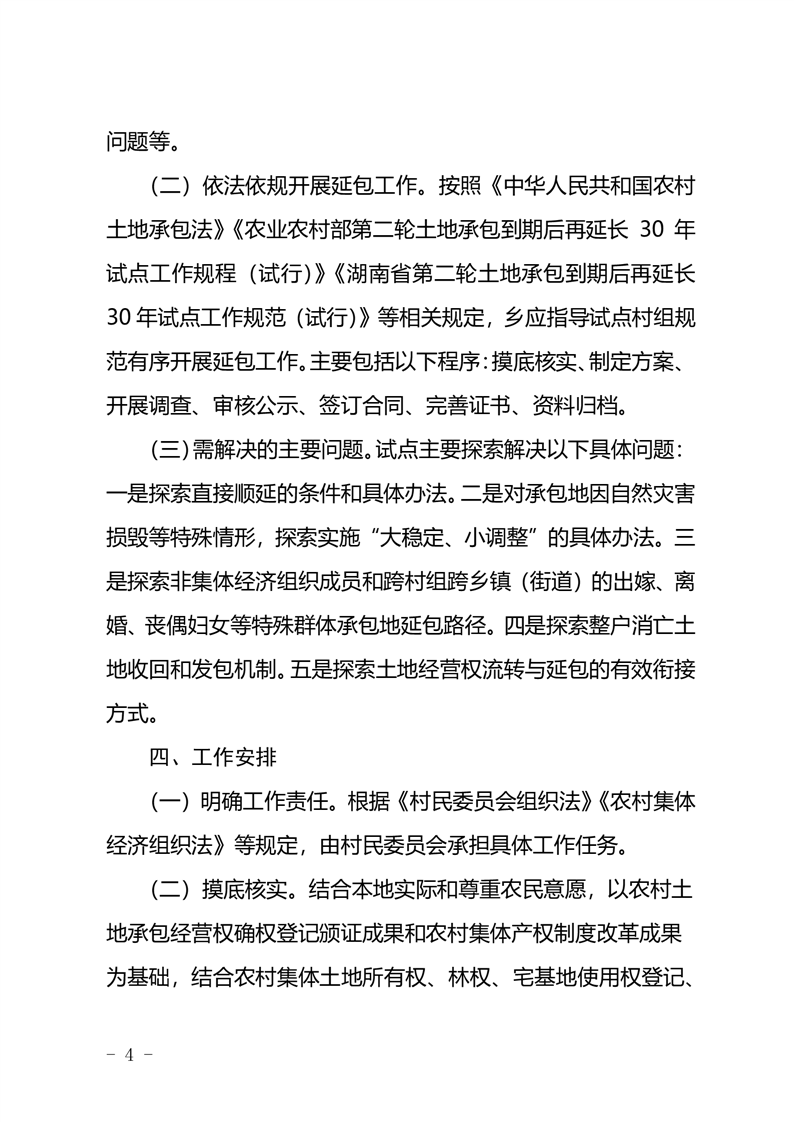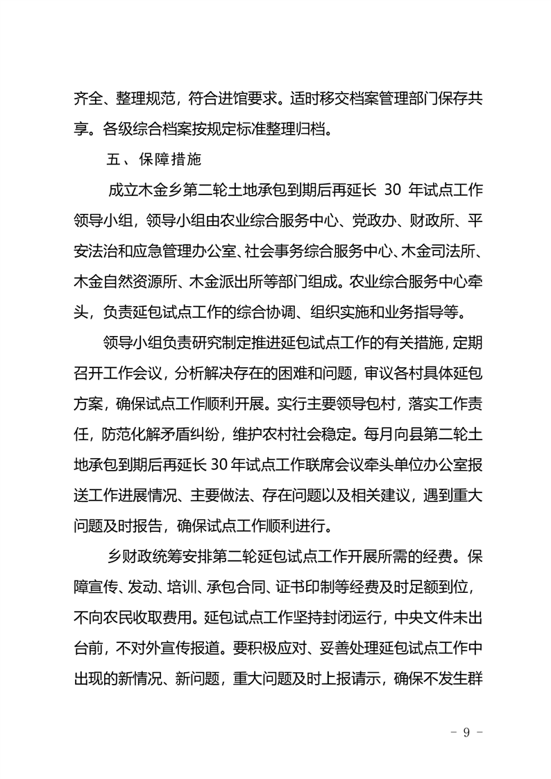关于印发《平江县木金乡第二轮土地承包到期后再延长30年试点工作方案》的通知