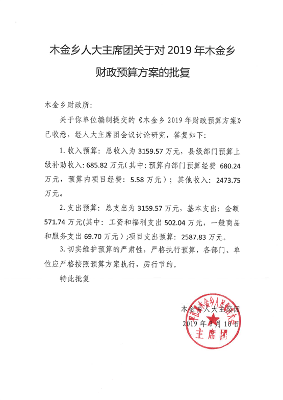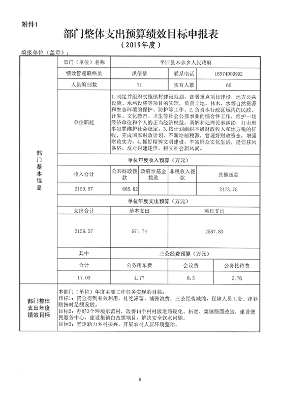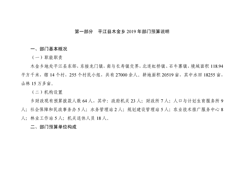 平江县木金乡人民政府2019年度部门预算