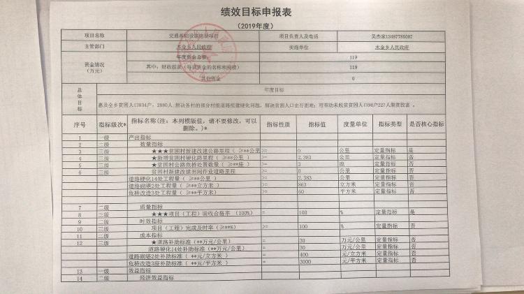 木金乡2019年统筹整合涉农资金项目库预算绩效申报