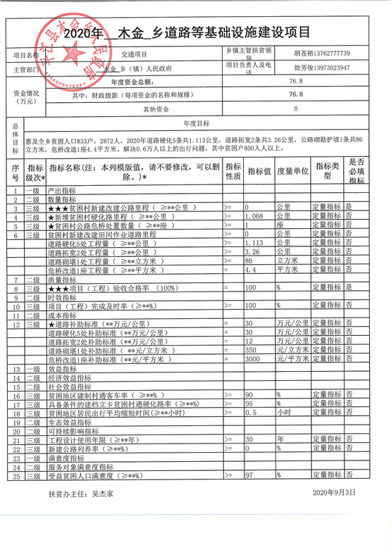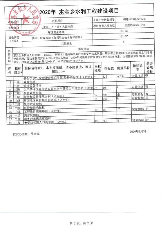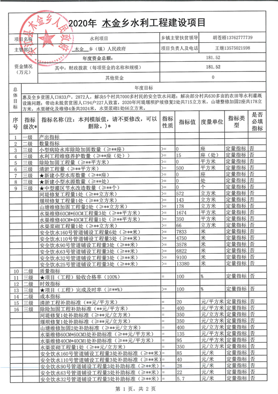 木金乡2020年统筹整合涉农资金项目库申报(调整)