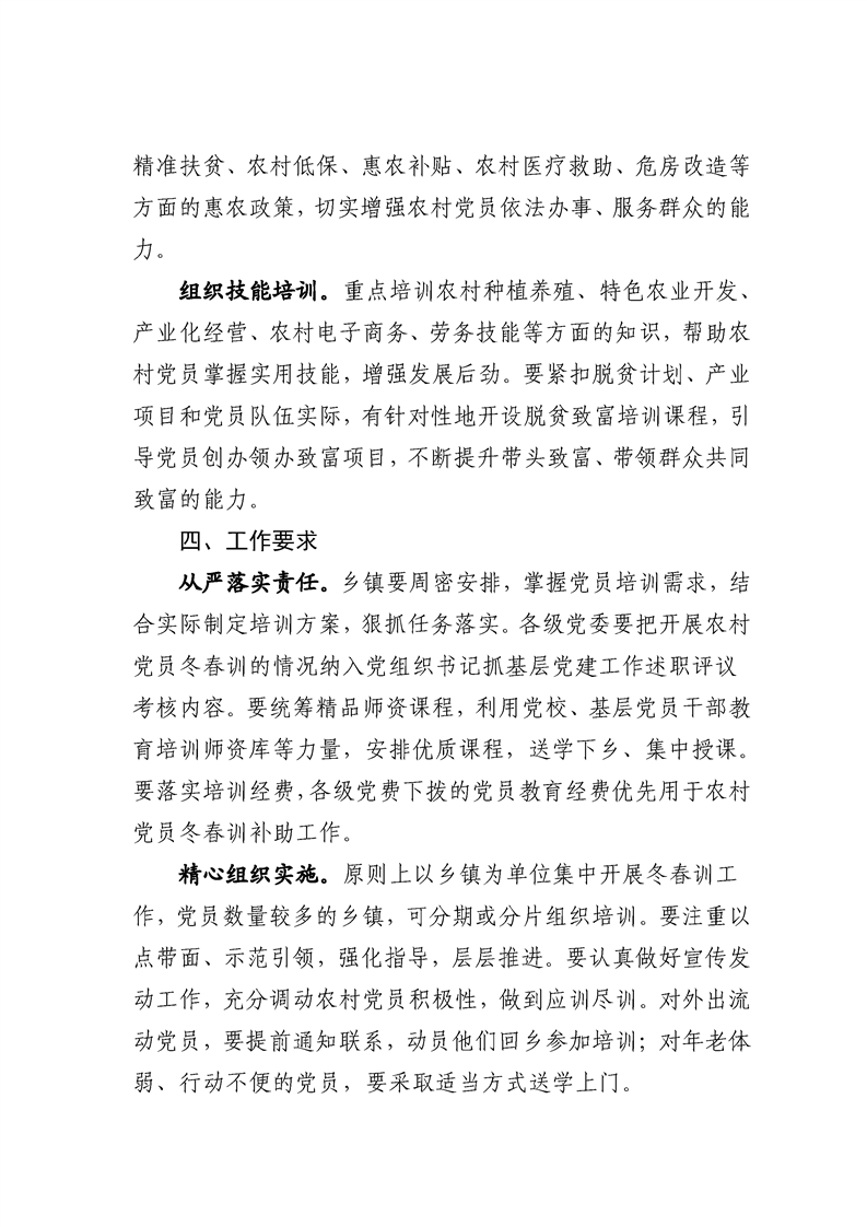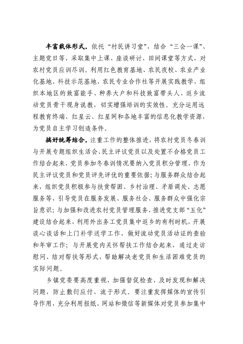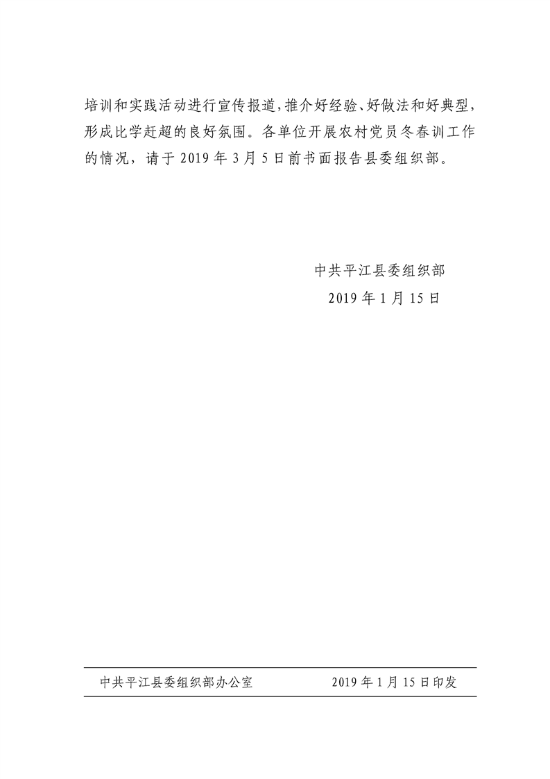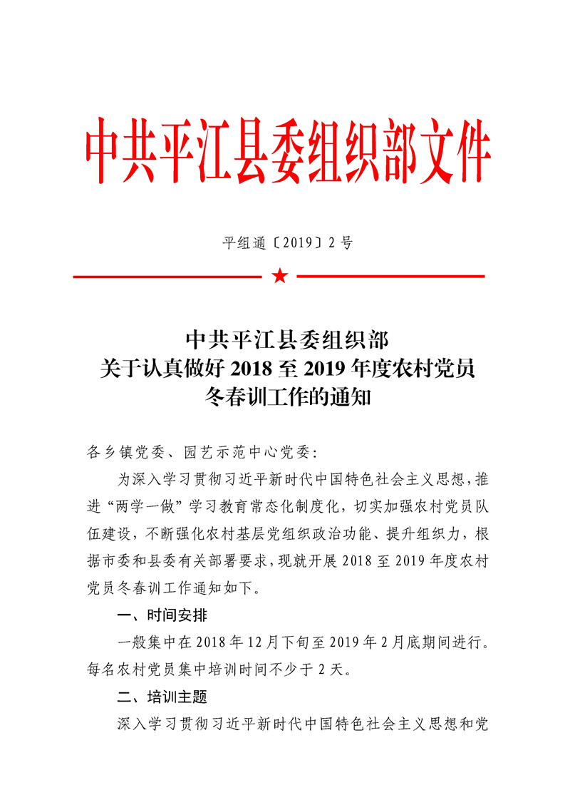 中共平江县委组织部关于认真做好2018至2019年度农村党员冬春训工作的通知