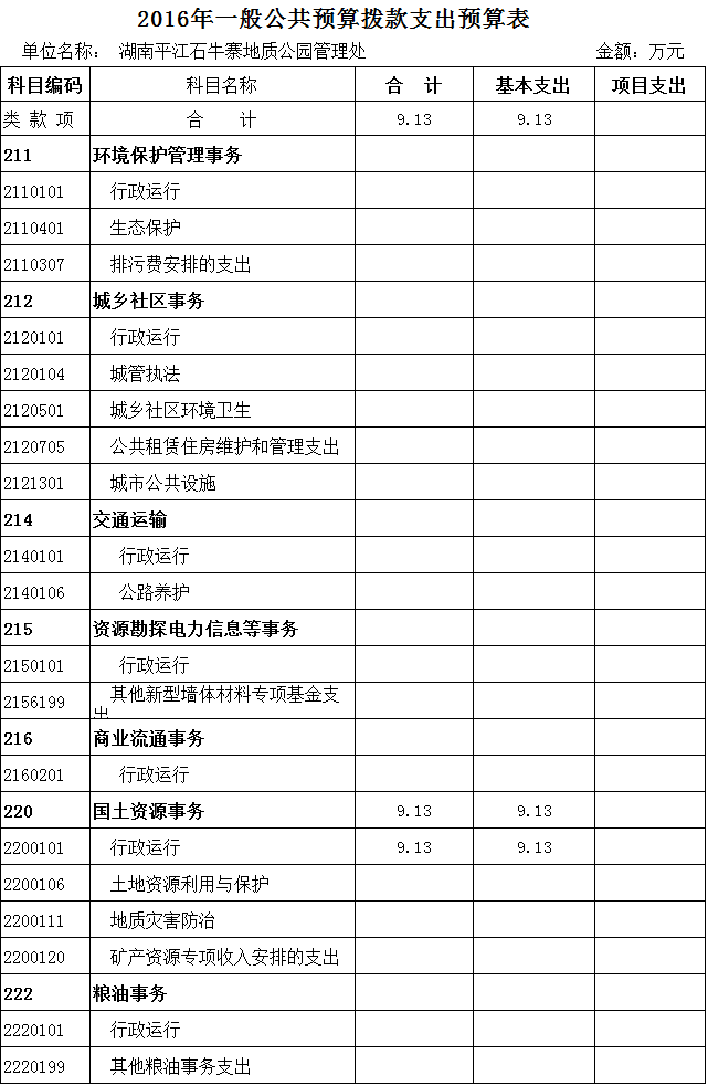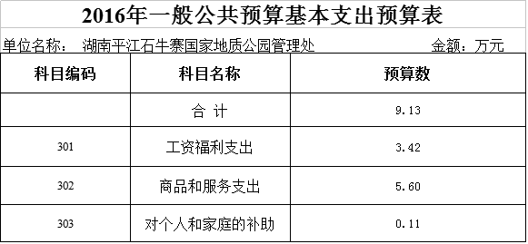 湖南平江石牛寨国家地质公园管理处2016年部门预算