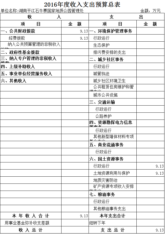 预算总收入9.13万元,经费拔款9.13万元。