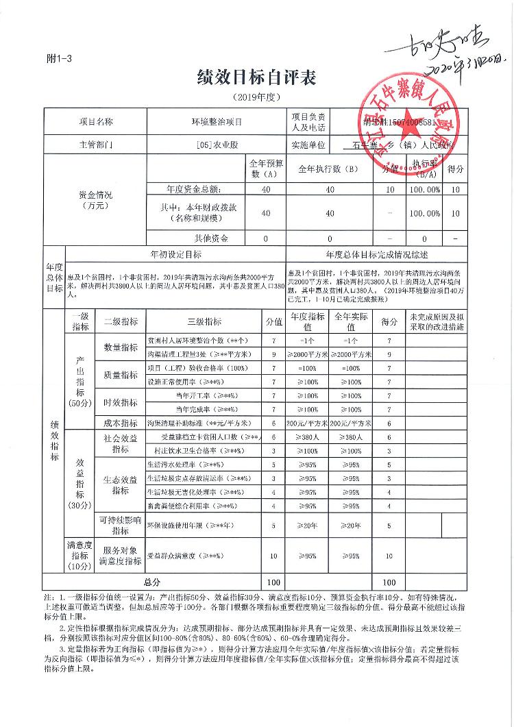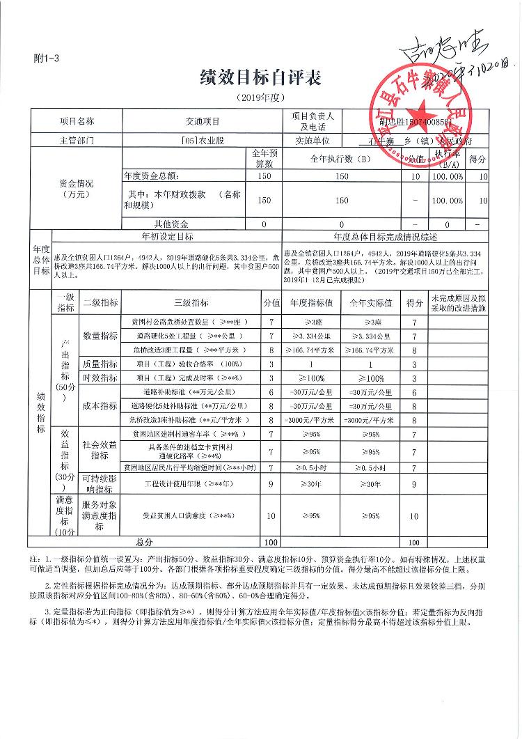 石牛寨镇2019年统筹整合涉农资金项目库预算绩效自评