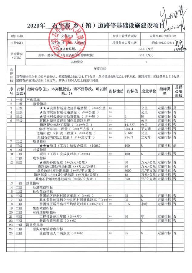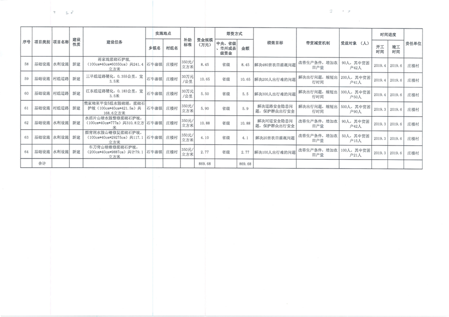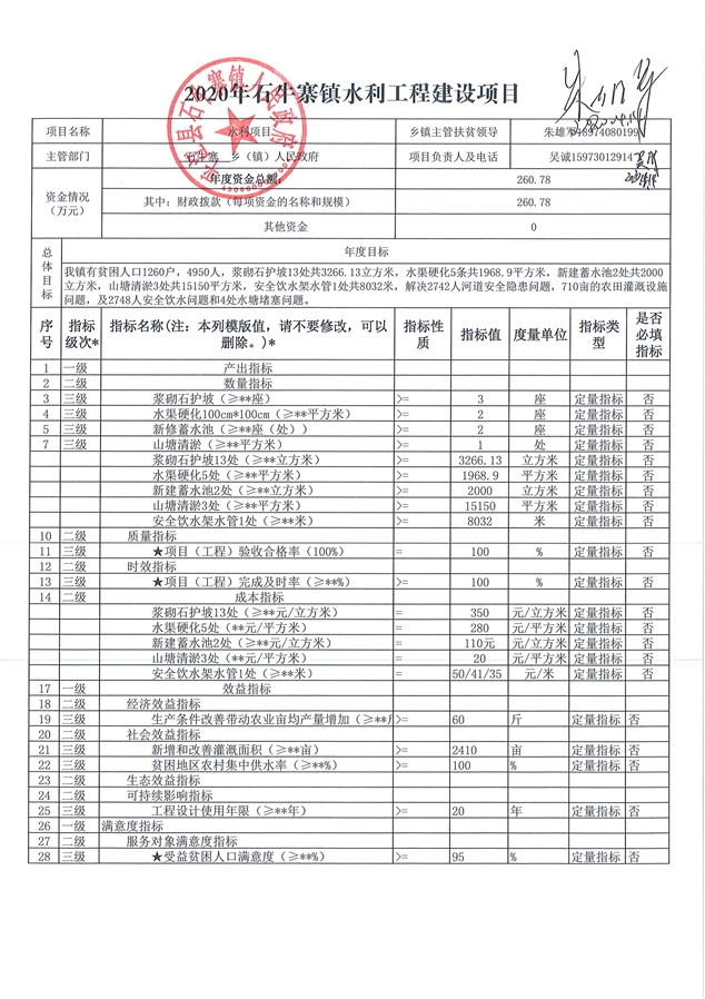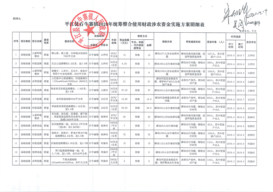 石牛寨镇2020年统筹整合涉农资金项目库预算绩效申报