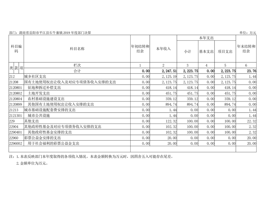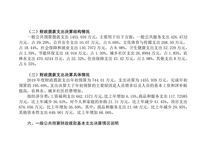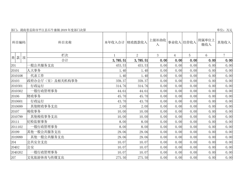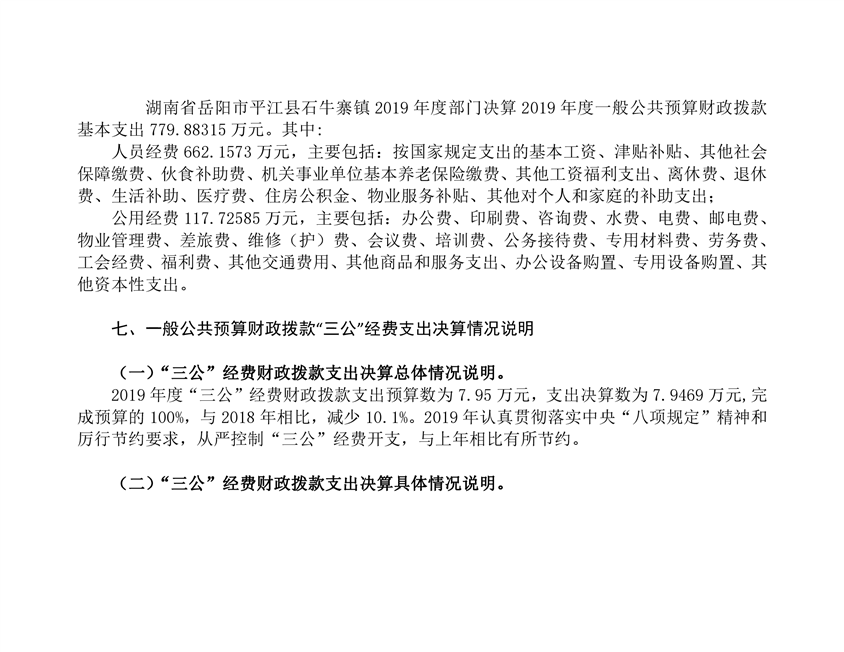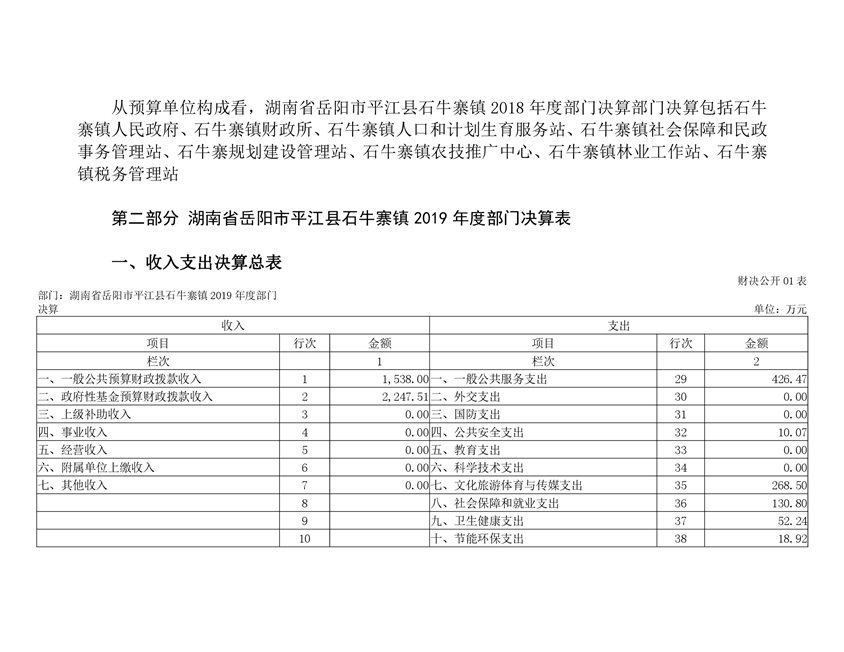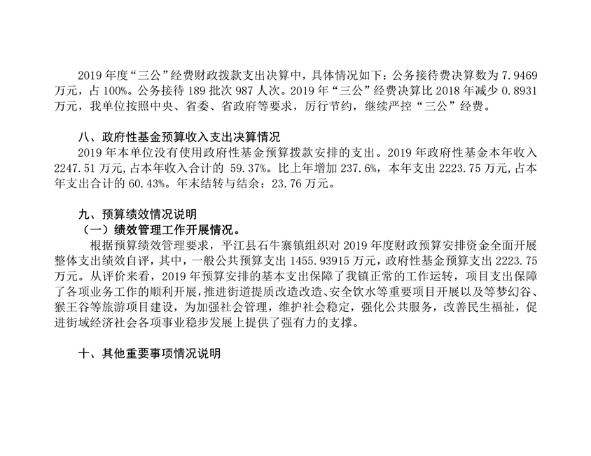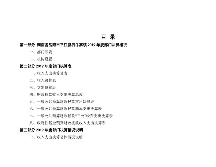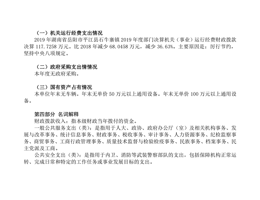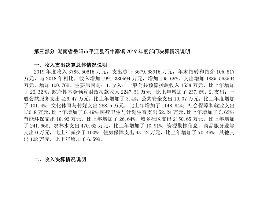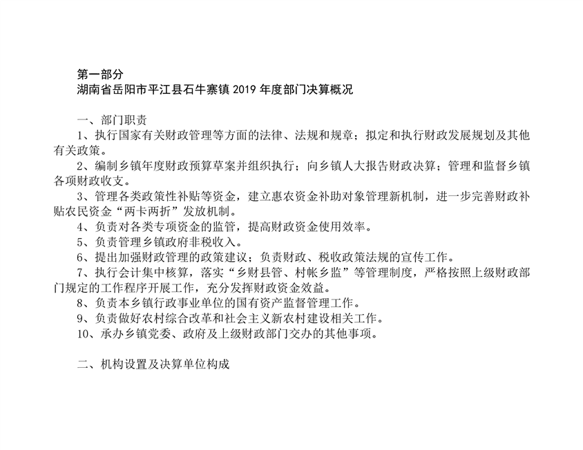 石牛寨镇2019年度部门决算编报说明