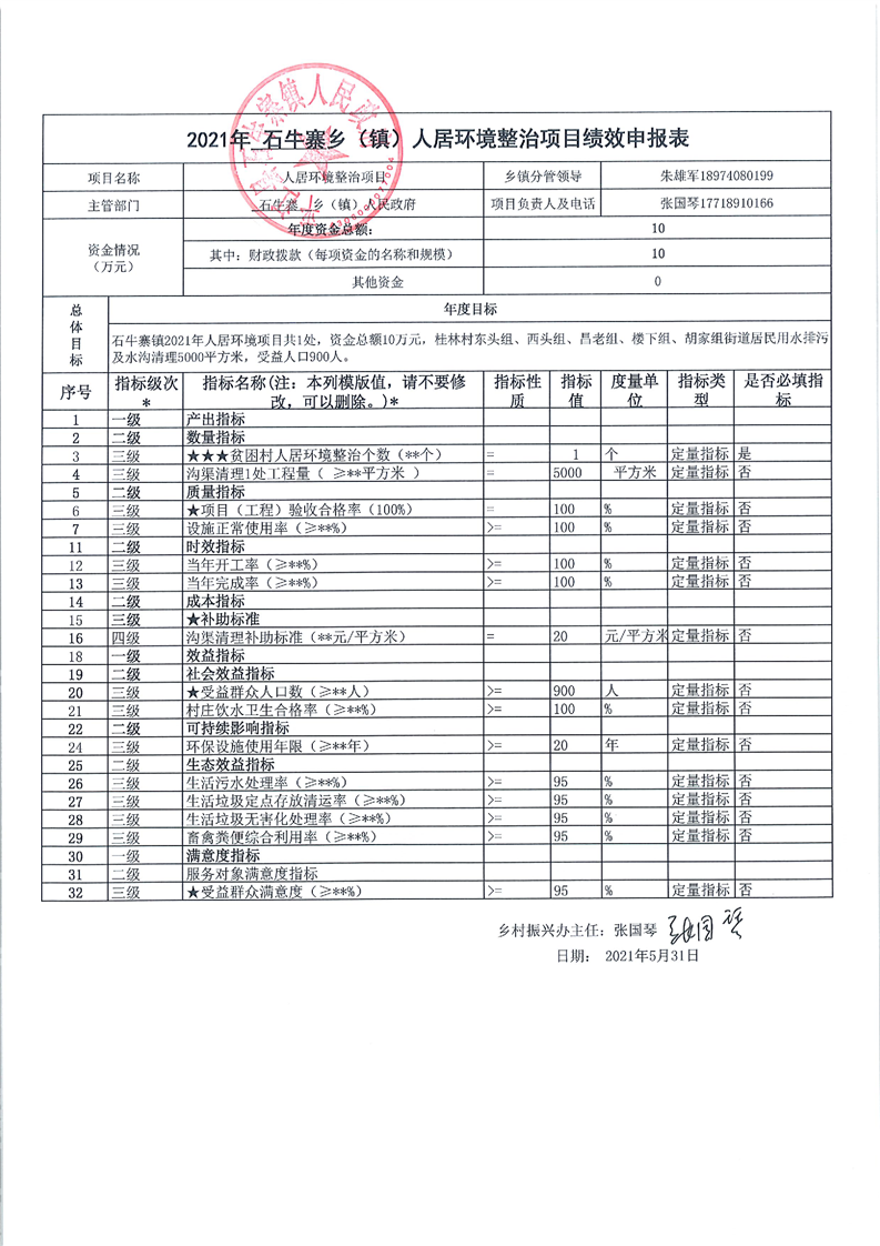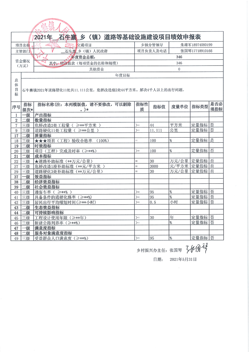 2021年石牛寨镇乡村振兴统筹整合项目资金绩效申报公示