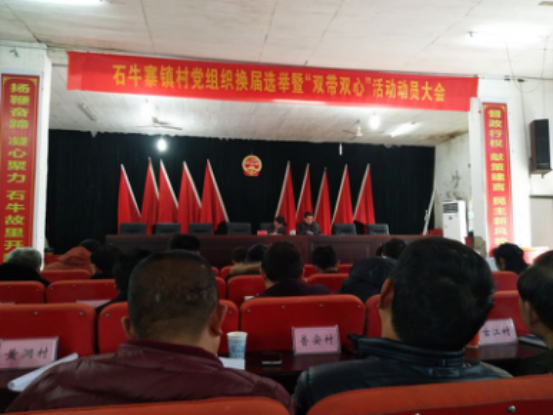 会上,镇纪委书记余潺生宣读了《石牛寨镇村党组织换届选举工作实施方案》和《关于在全镇农村党员中深入开展“双带双心”党建主题活动实施方案》并就后段换届选举办法、换届纪律、党员摸底等工作做了具体安排。