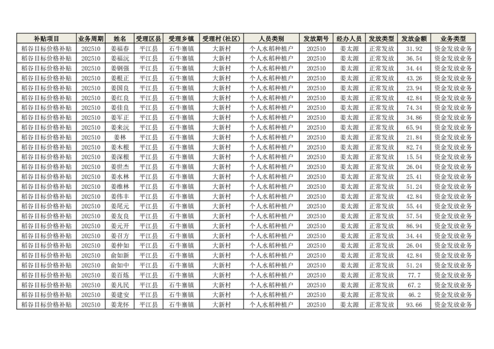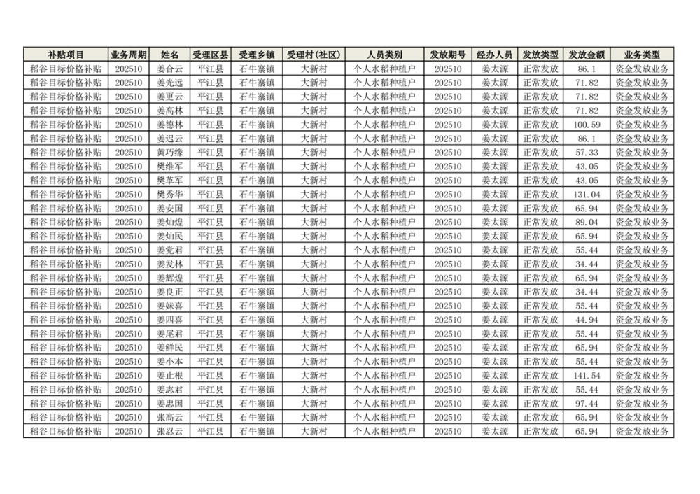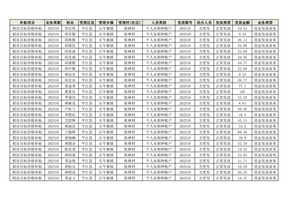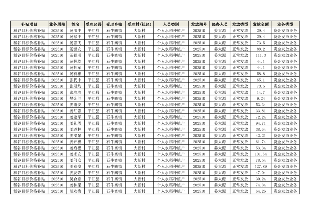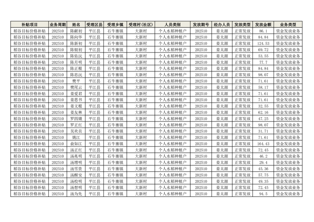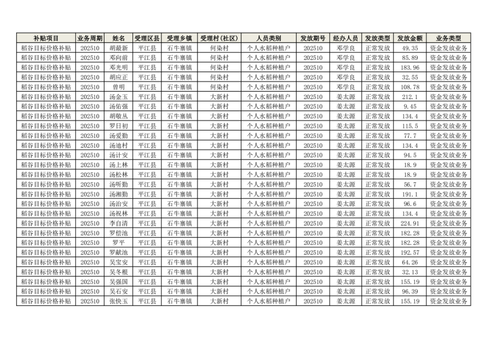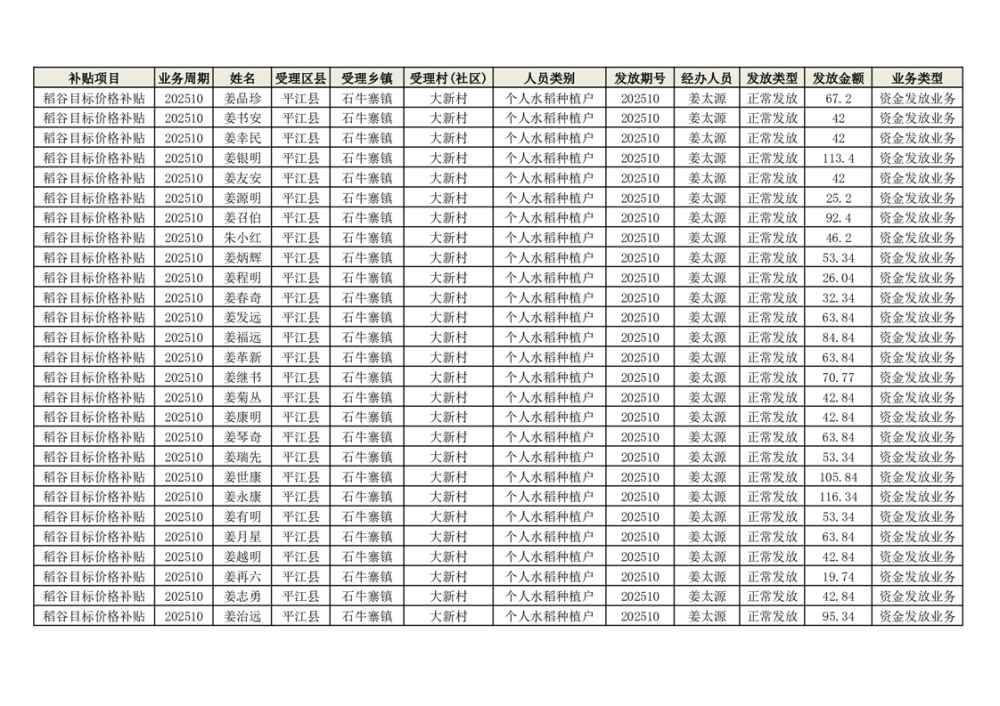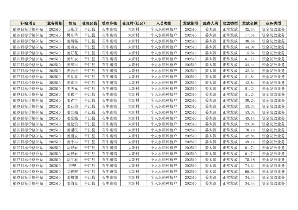 2025年石牛寨镇稻谷目标价格补贴发放1(古江、大坪、大新、桂林、何染)