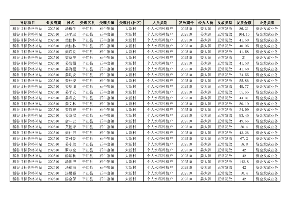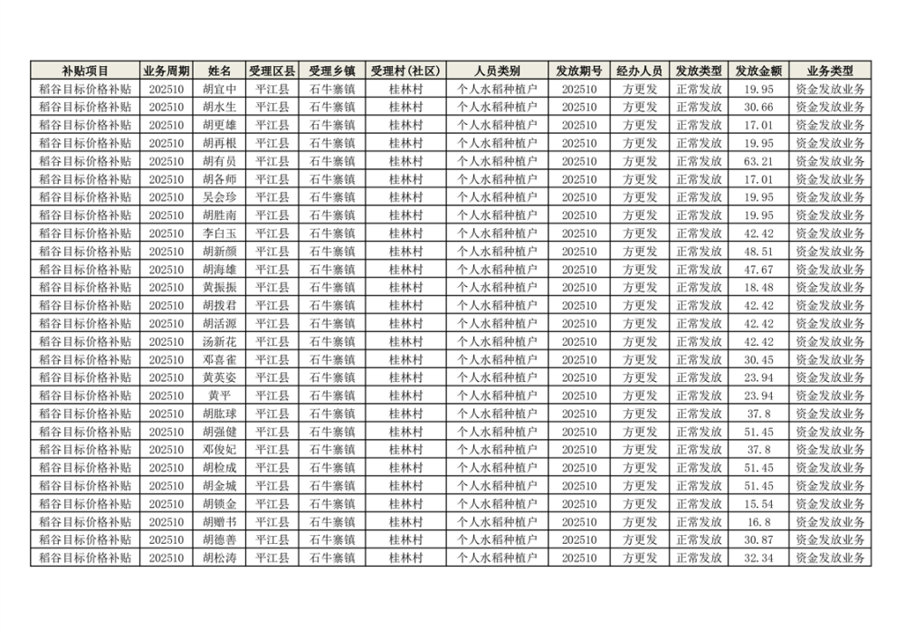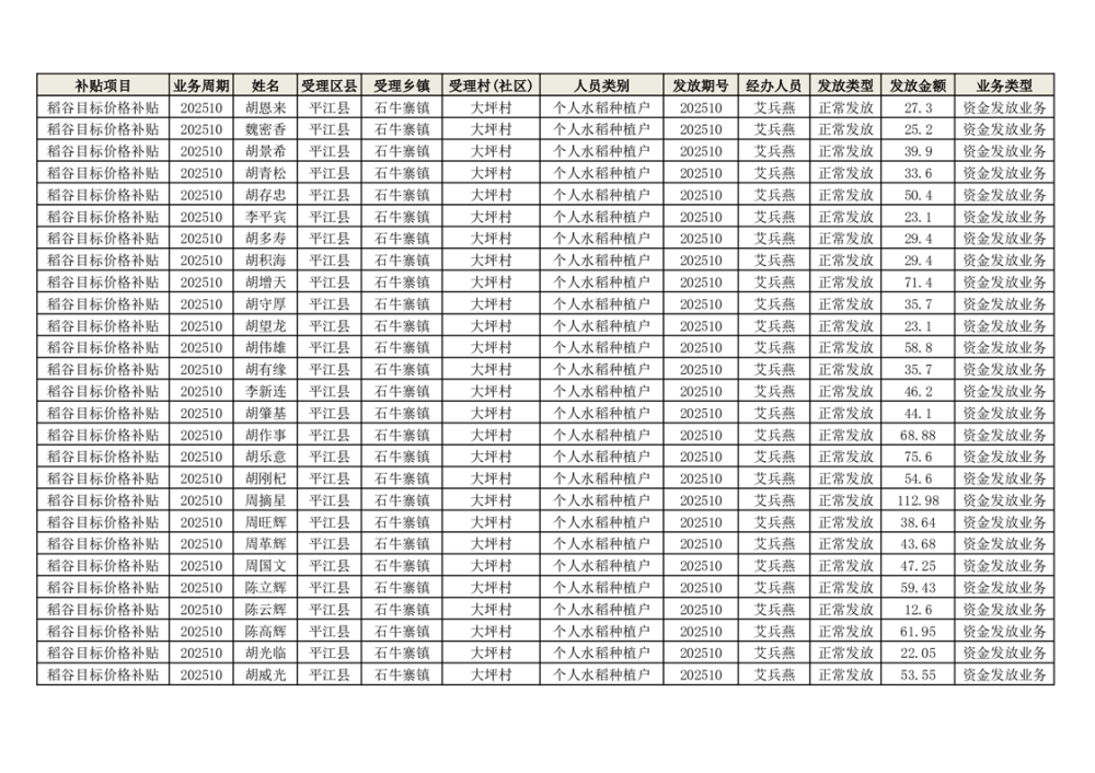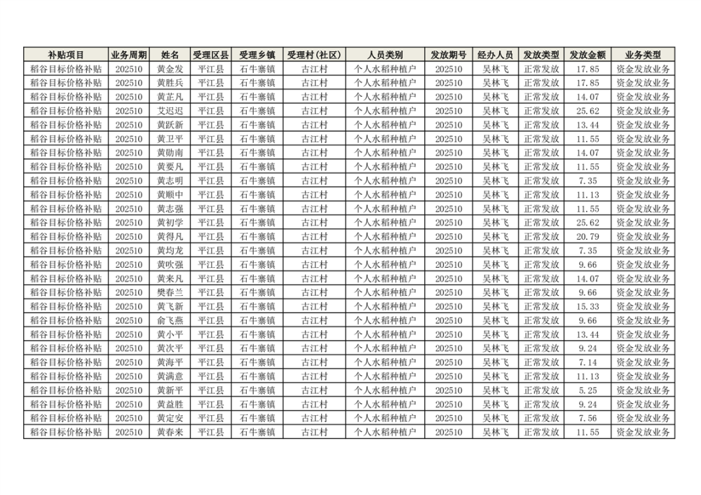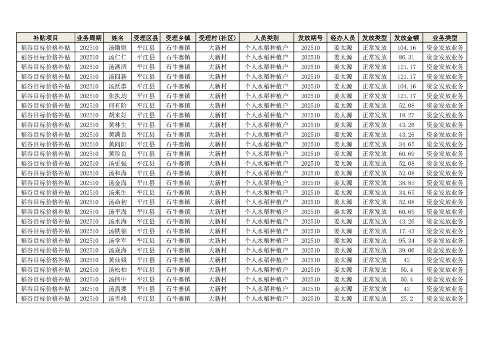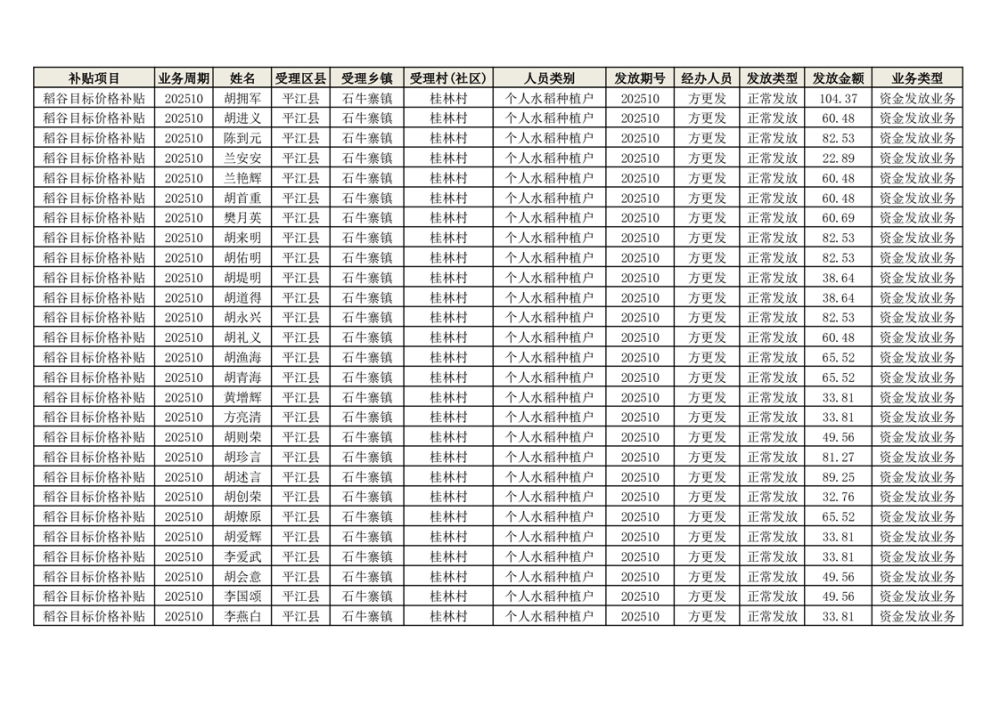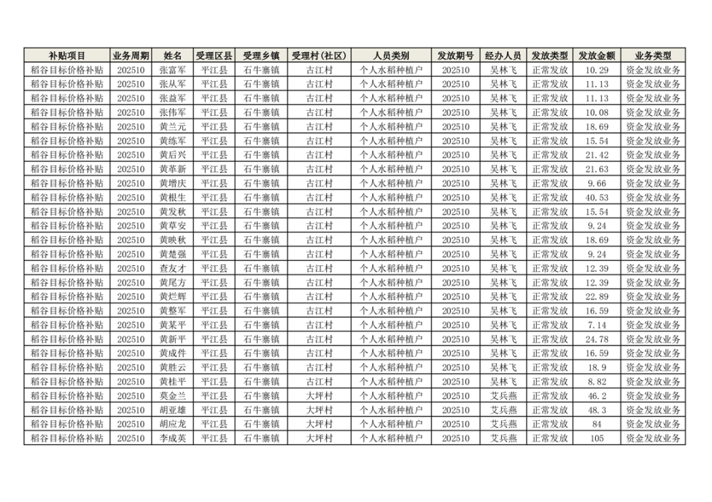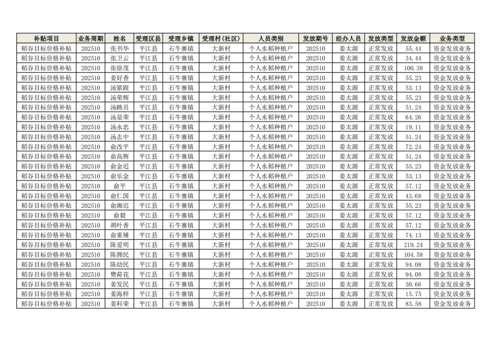 2025年石牛寨镇稻谷目标价格补贴发放1(古江、大坪、大新、桂林、何染)