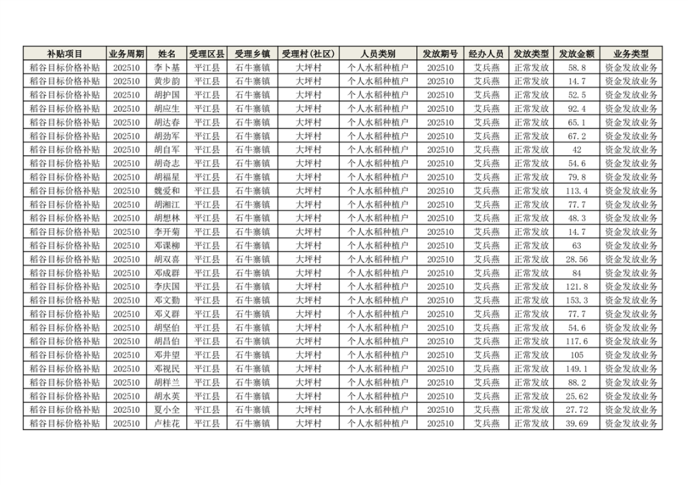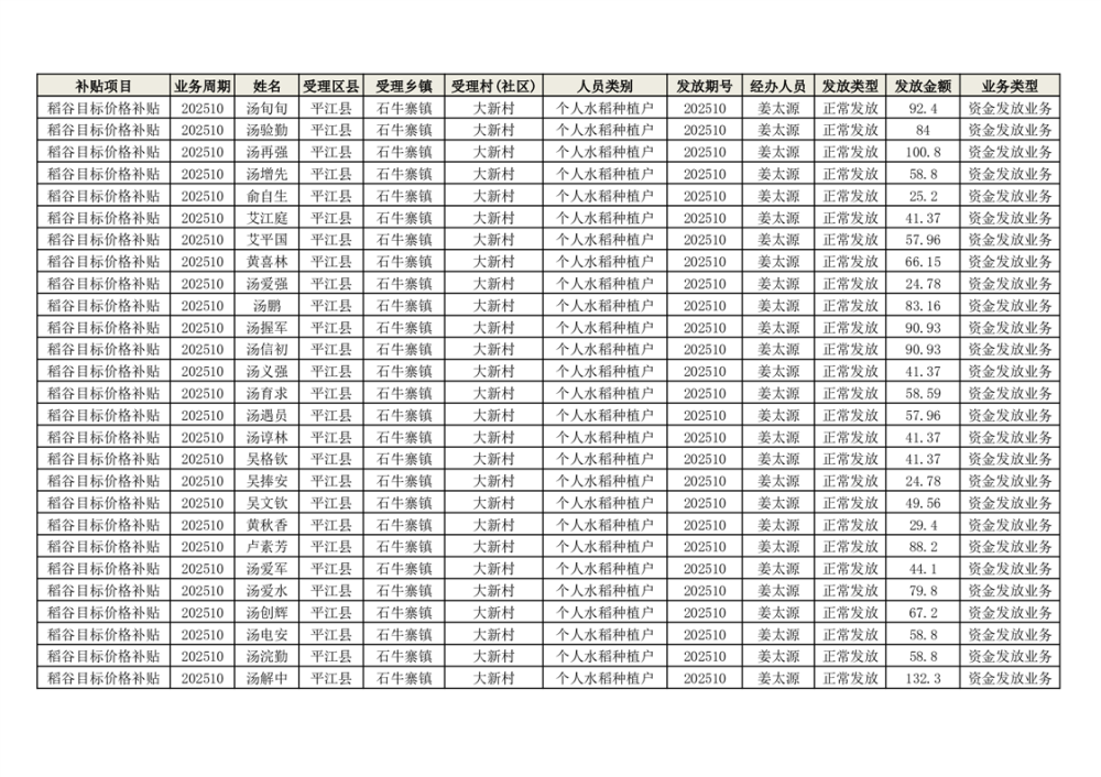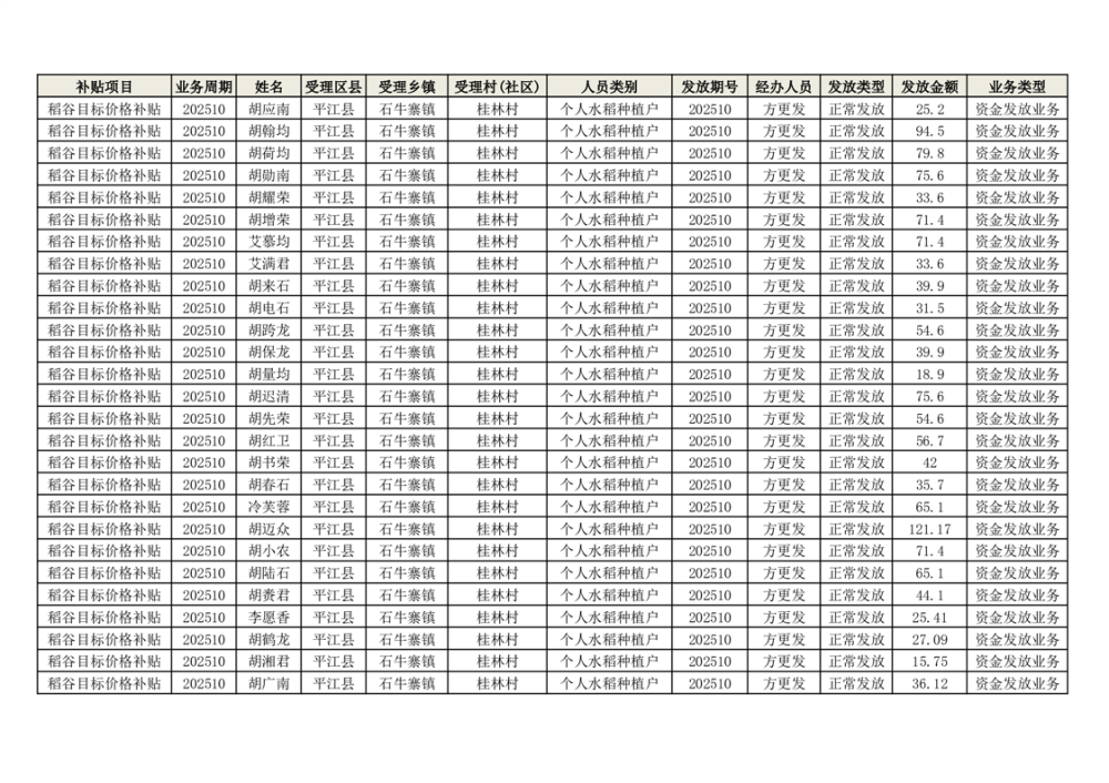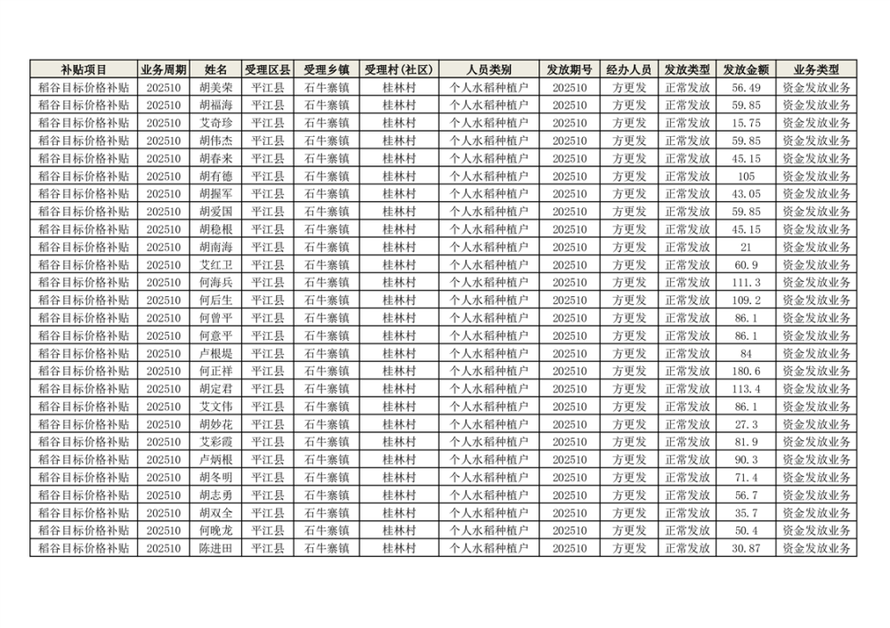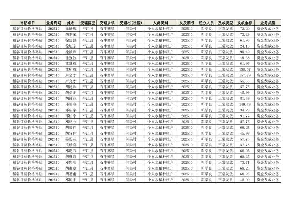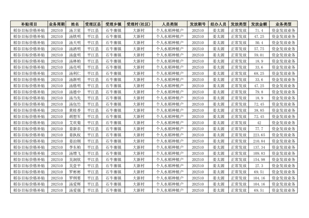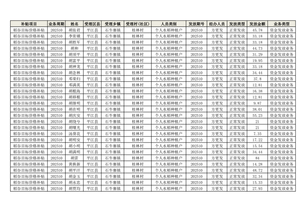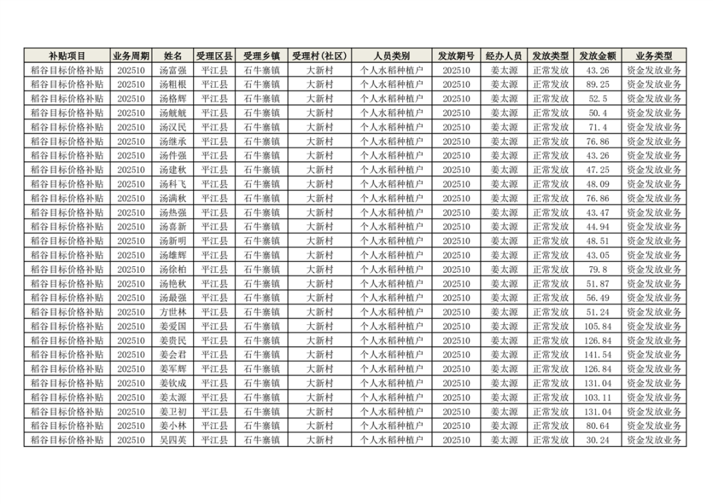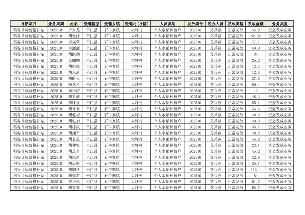 2025年石牛寨镇稻谷目标价格补贴发放1(古江、大坪、大新、桂林、何染)