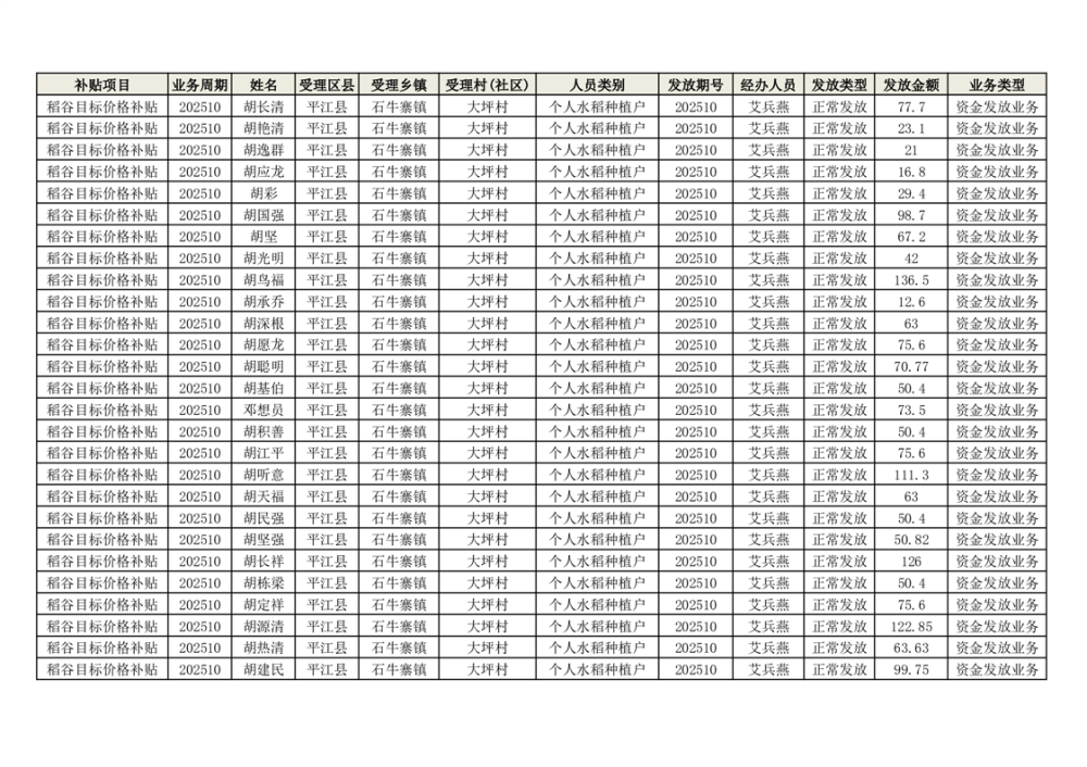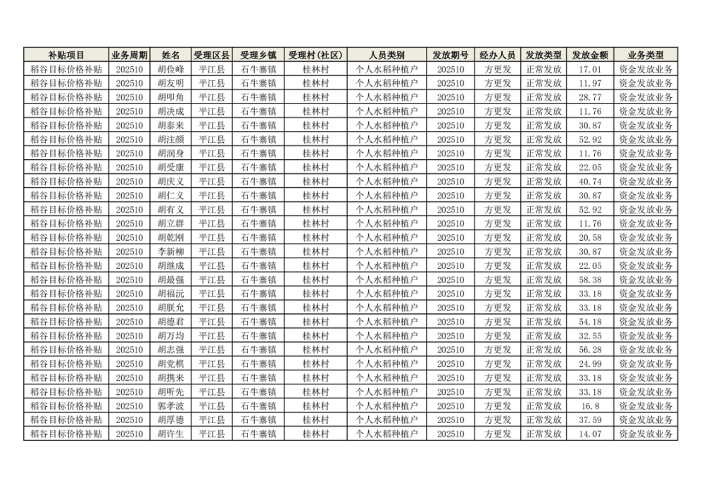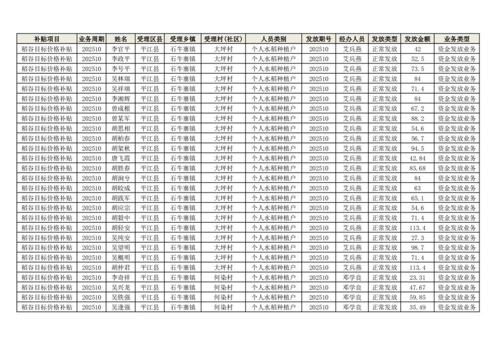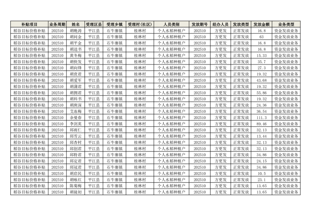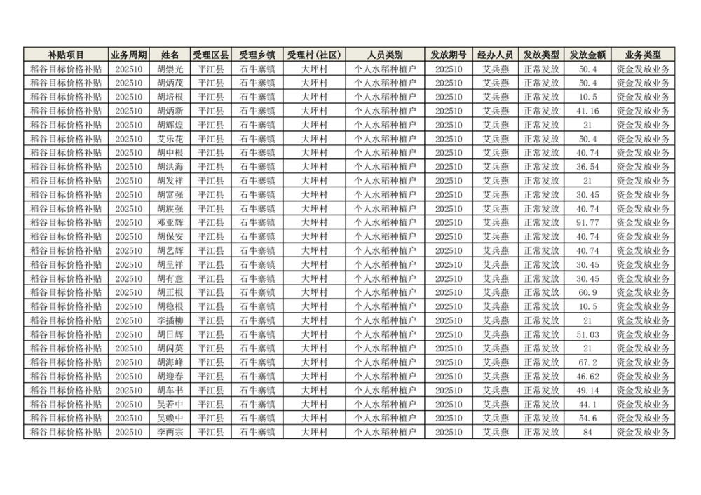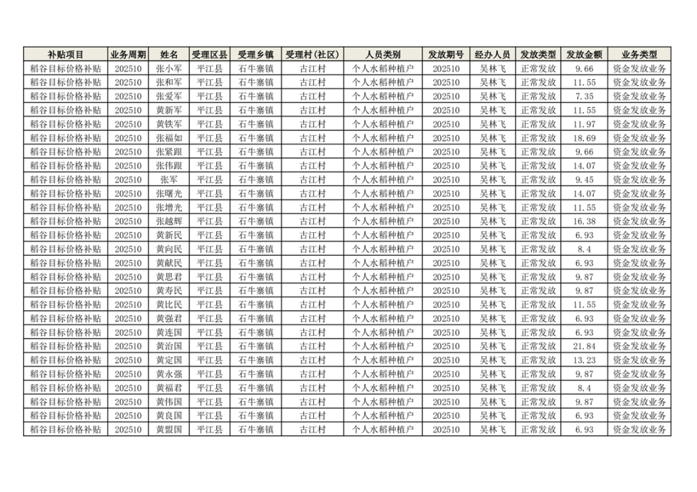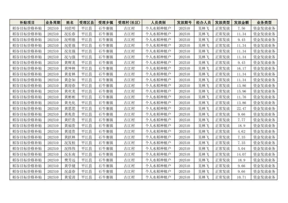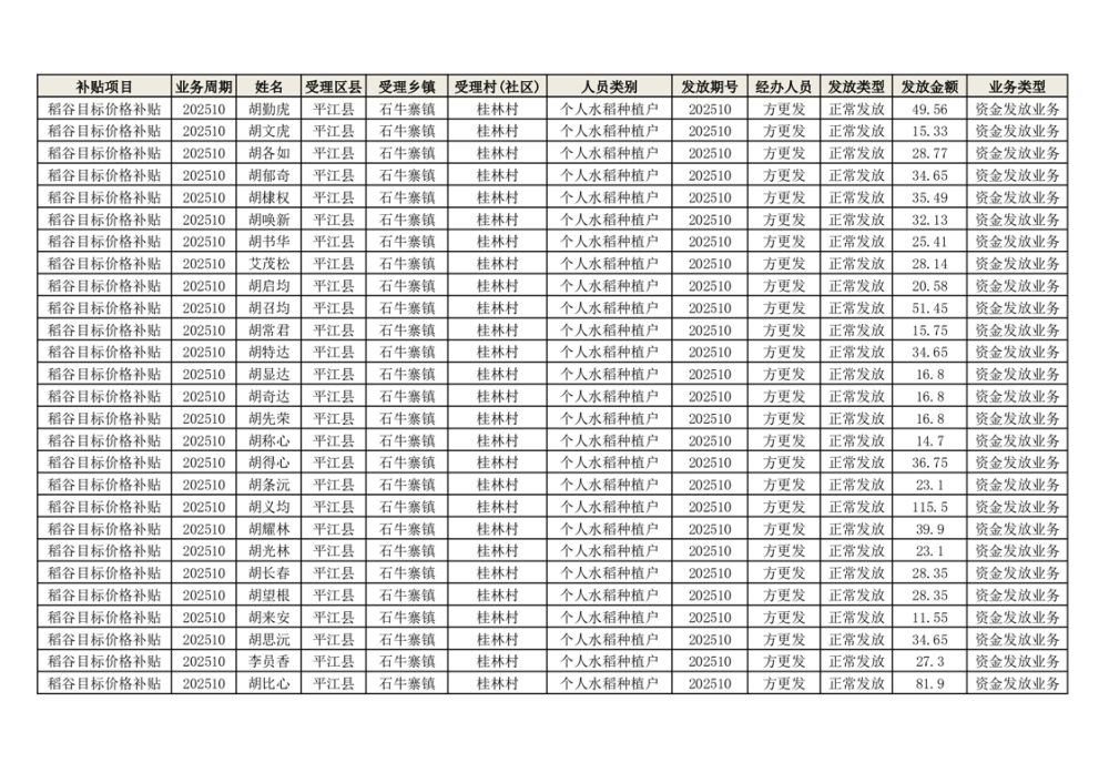 2025年石牛寨镇稻谷目标价格补贴发放1(古江、大坪、大新、桂林、何染)