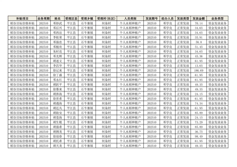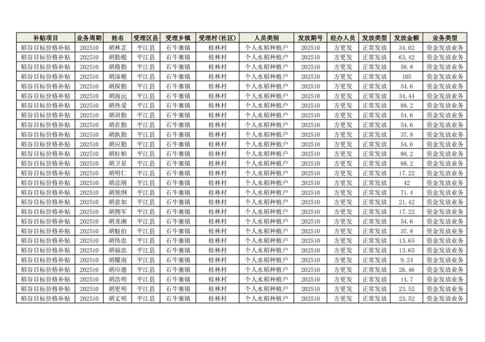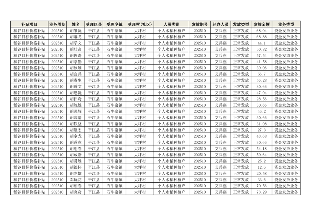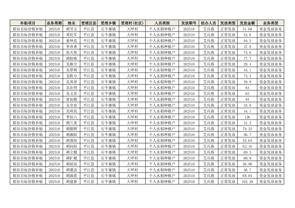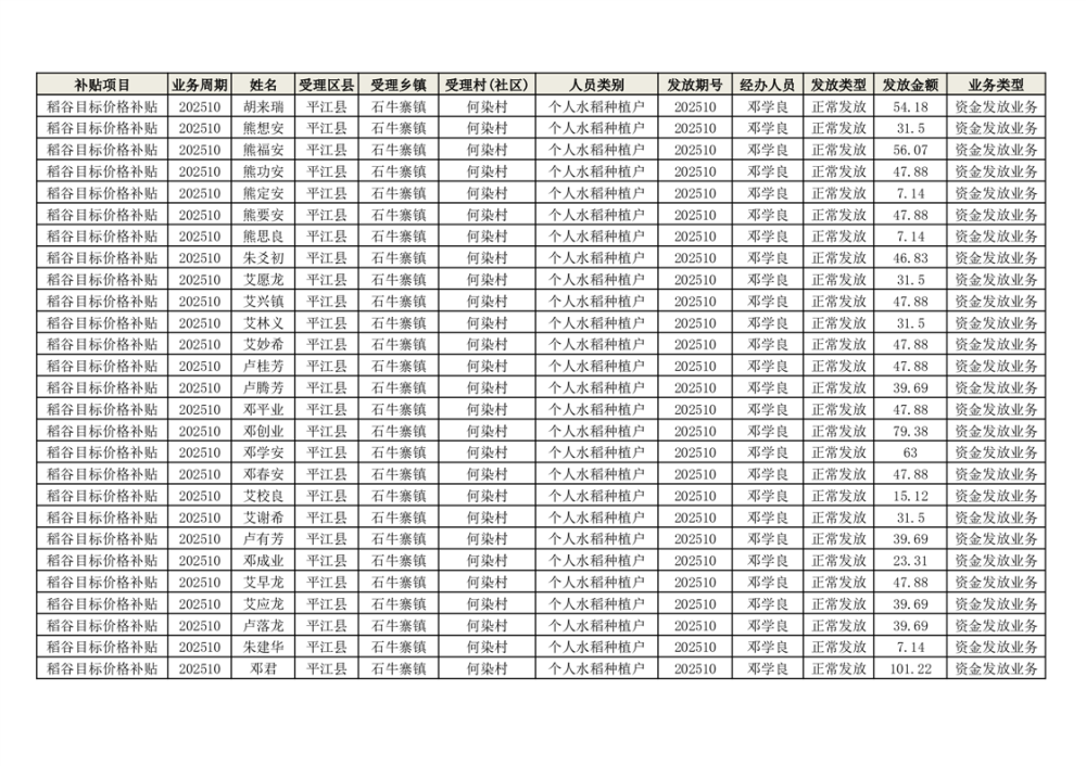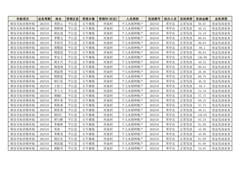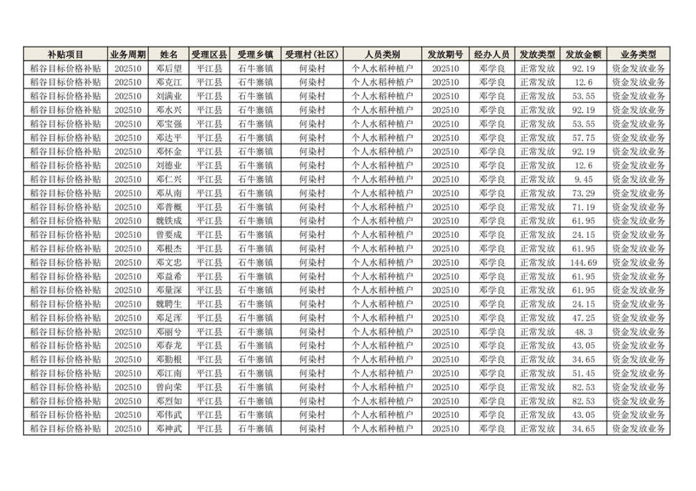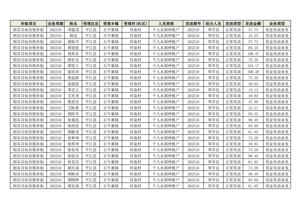 2025年石牛寨镇稻谷目标价格补贴发放1(古江、大坪、大新、桂林、何染)