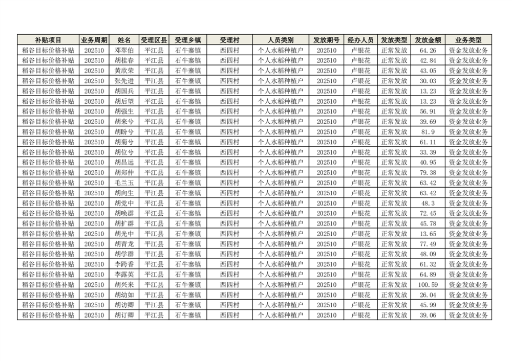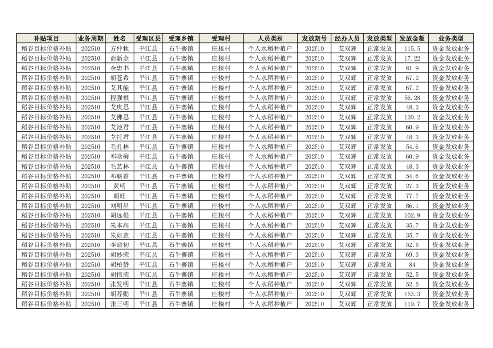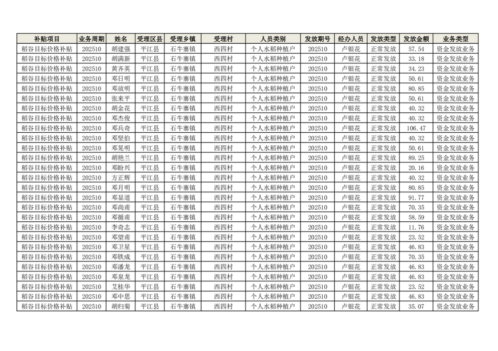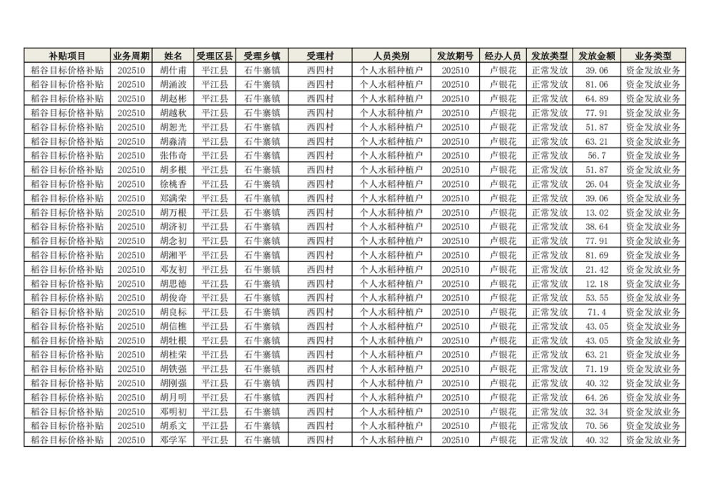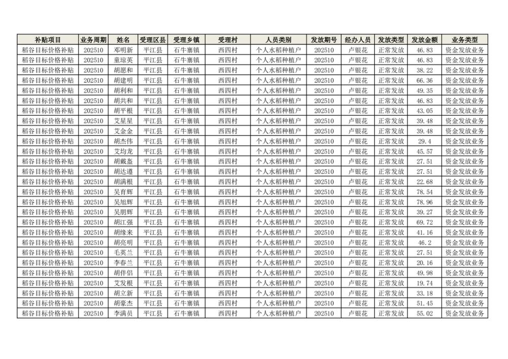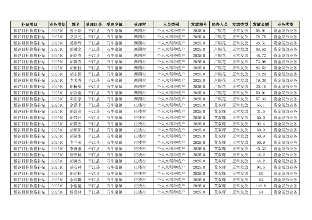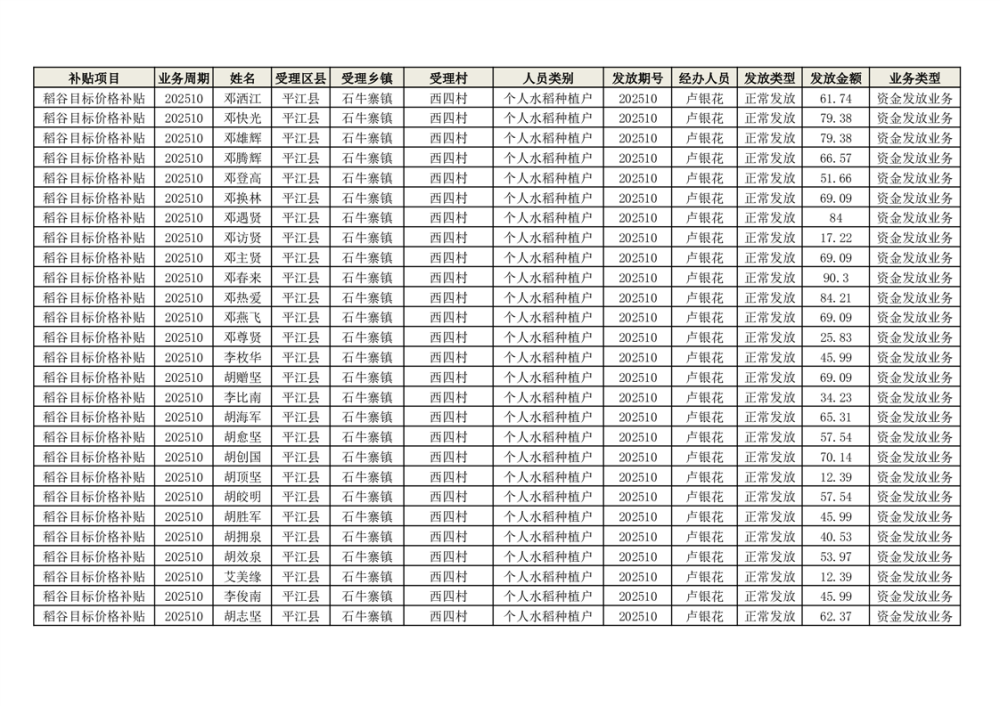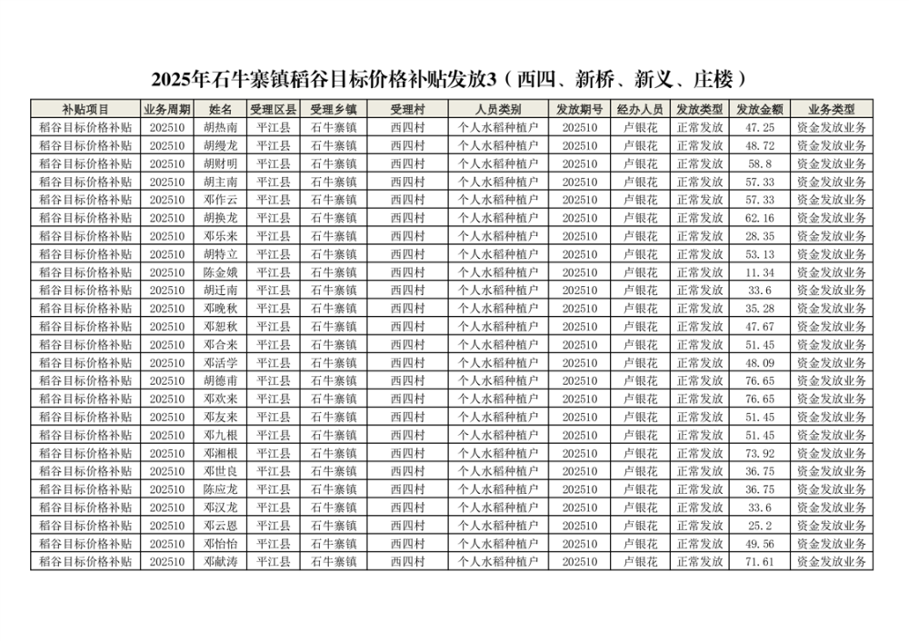 2025年石牛寨镇稻谷目标价格补贴发放3(西四、新桥、新义、庄楼)
