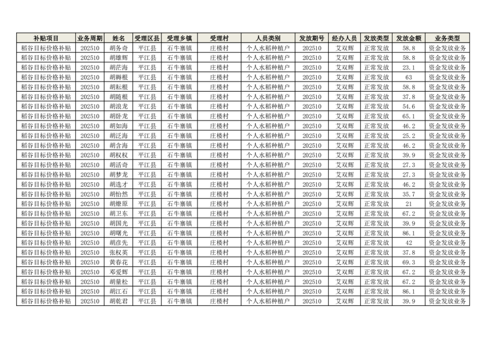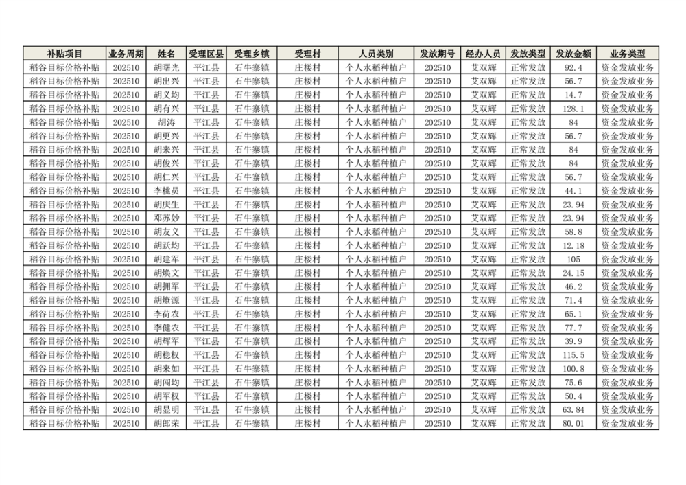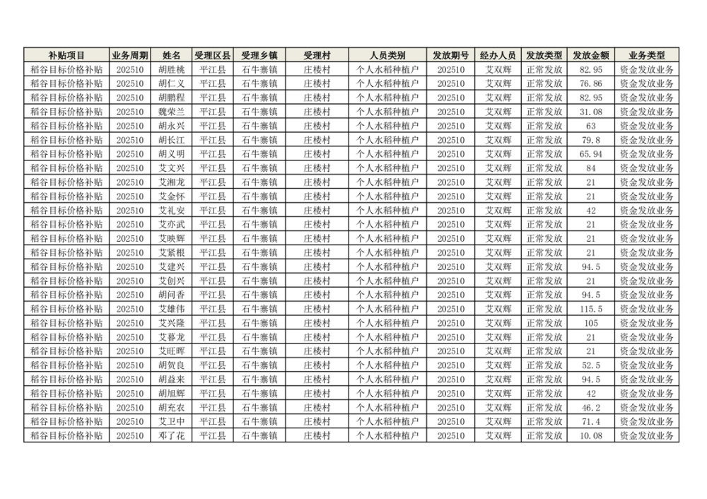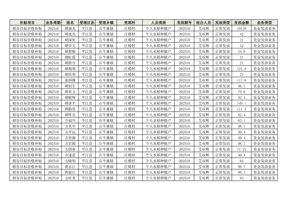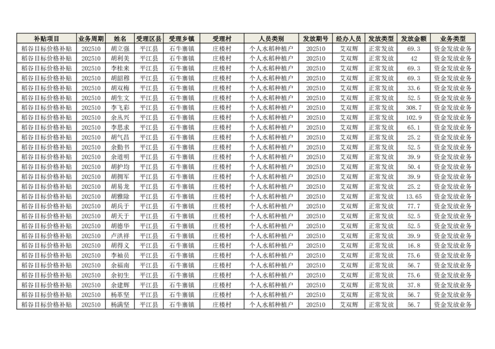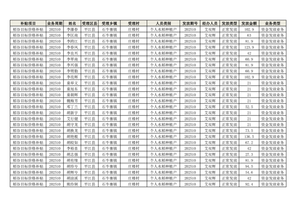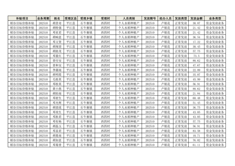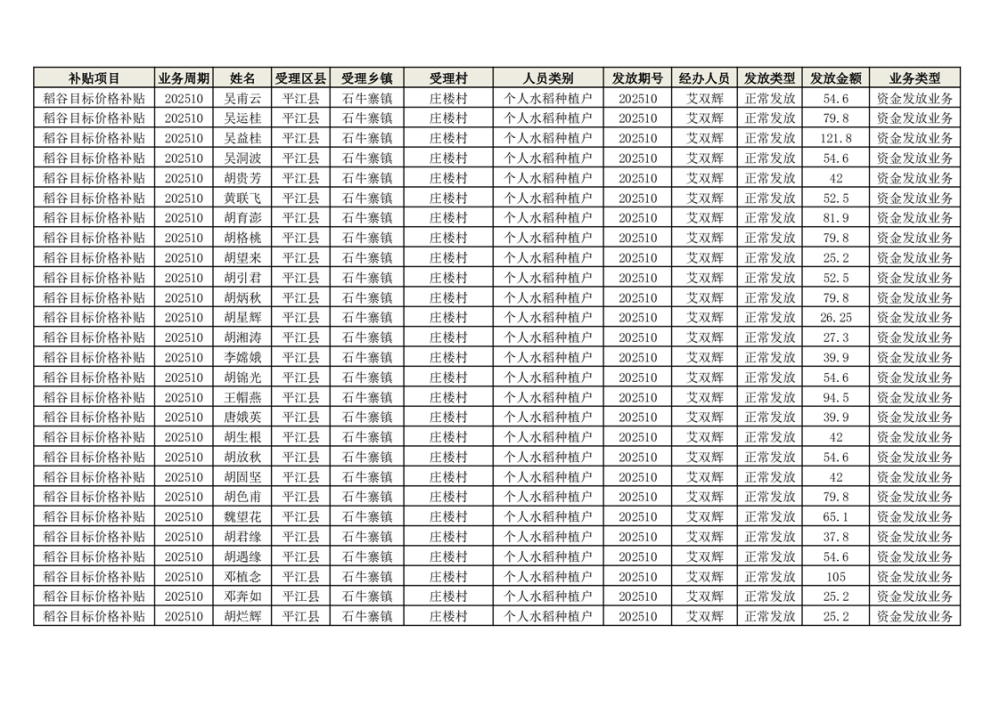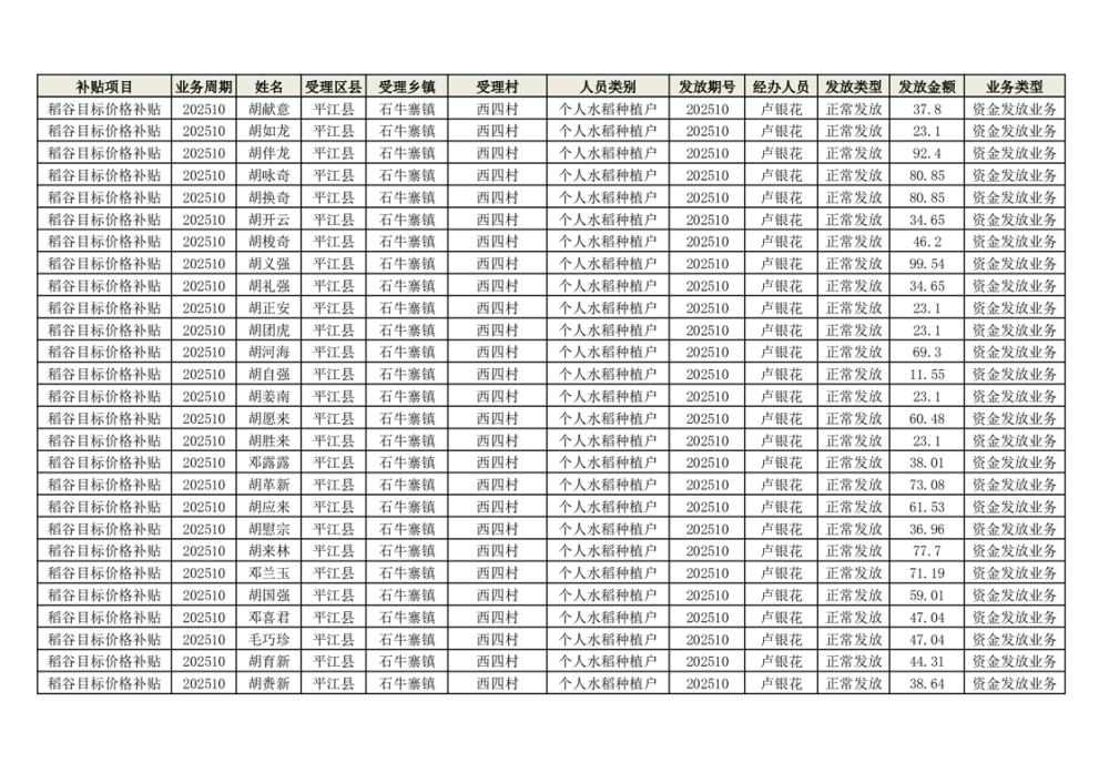 2025年石牛寨镇稻谷目标价格补贴发放3(西四、新桥、新义、庄楼)