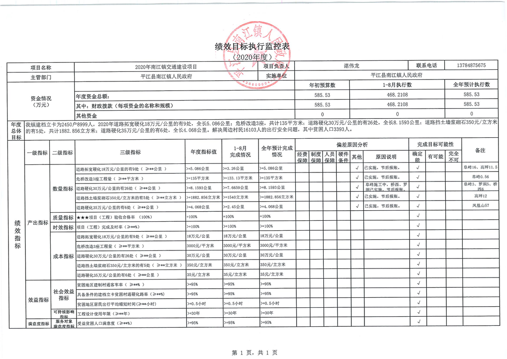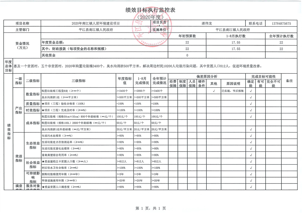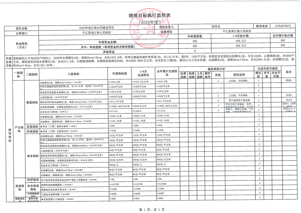 南江镇2020年统筹整合涉农资金项目库预算绩效监控