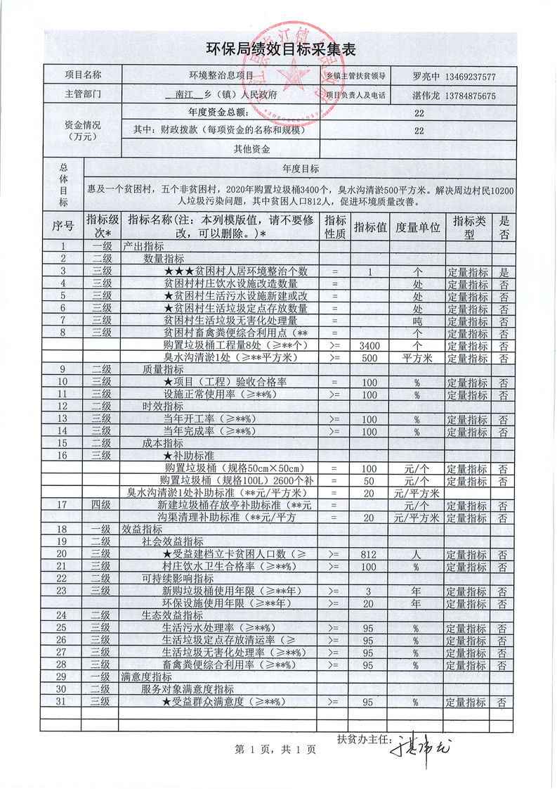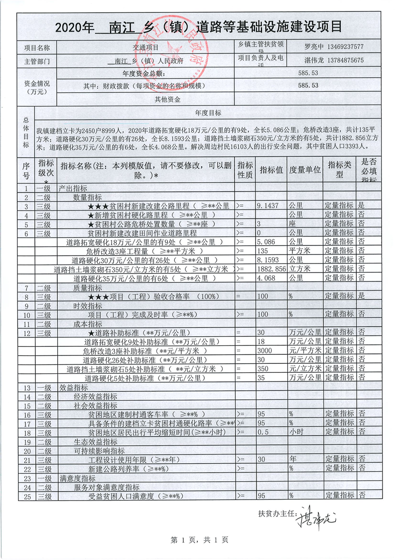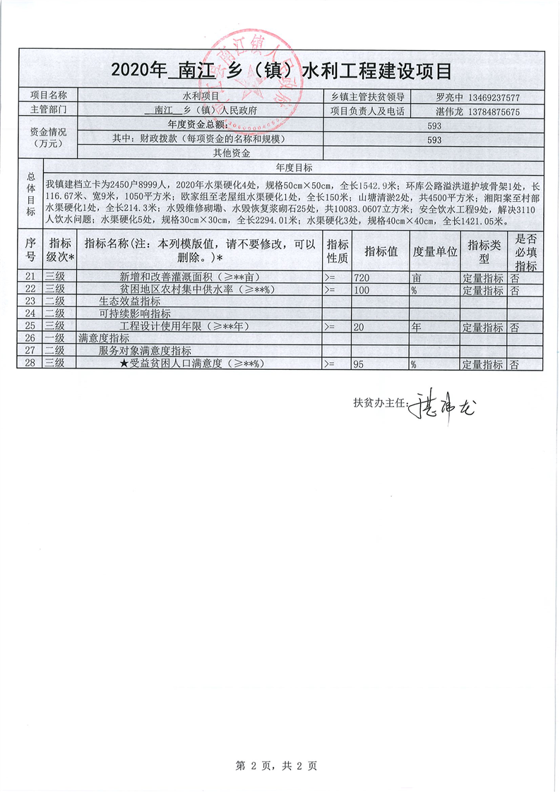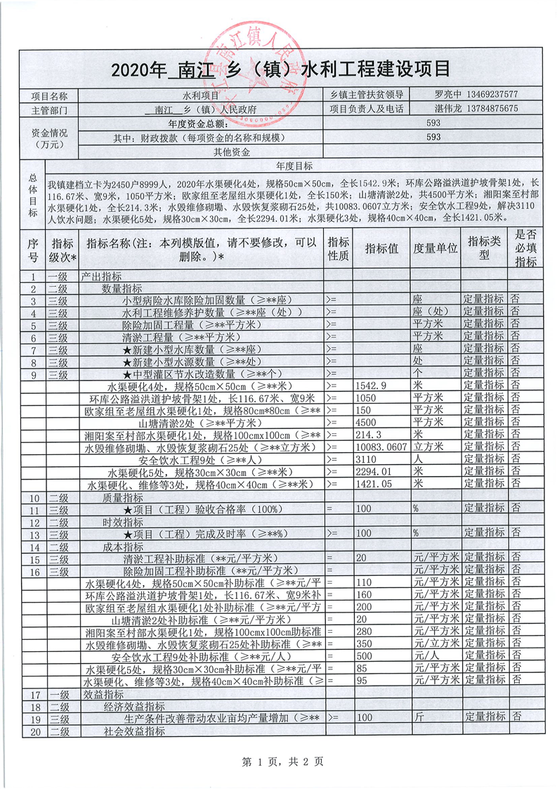 南江镇2020年统筹整合涉农资金项目库预算绩效申报(调整)