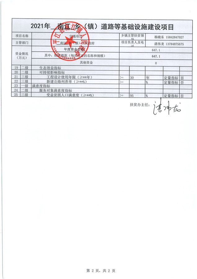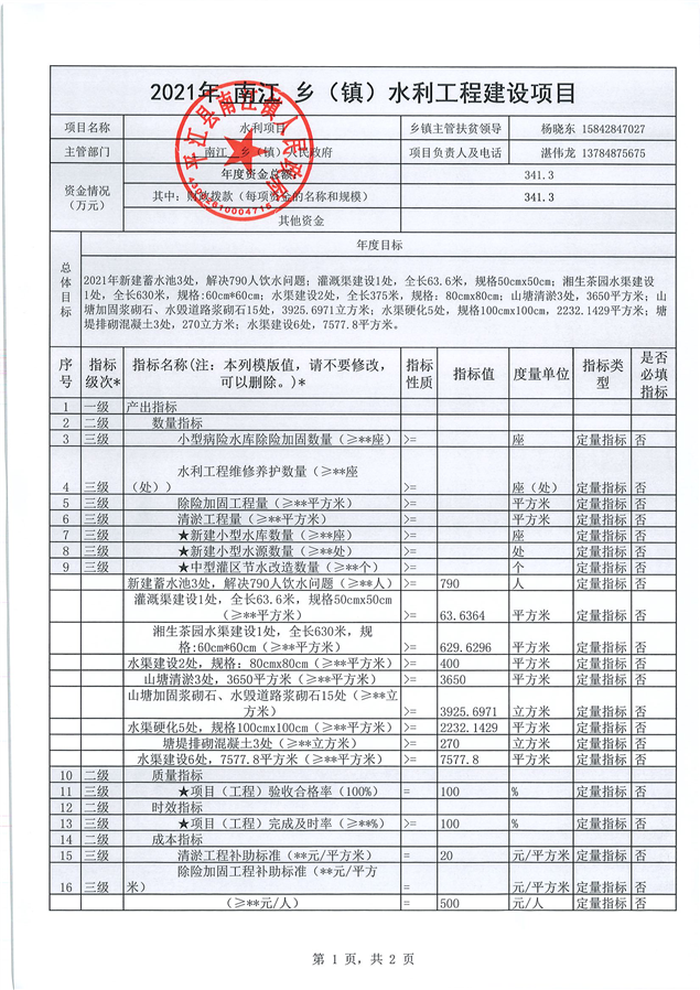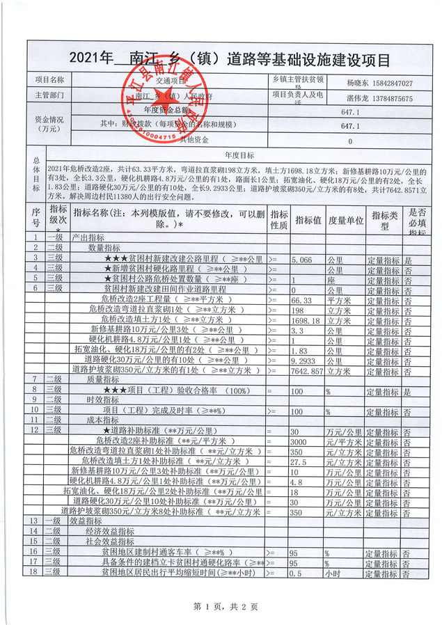 南江镇人民政府2021年项目申报表