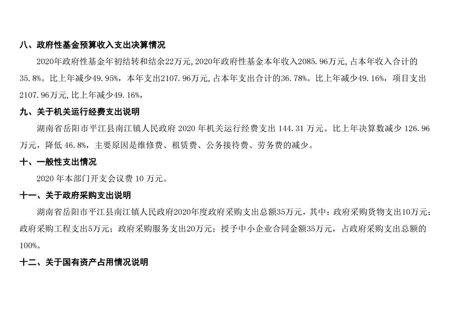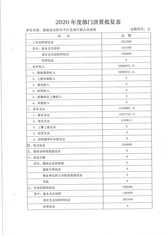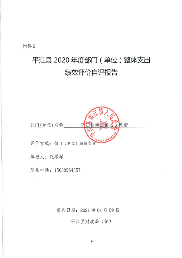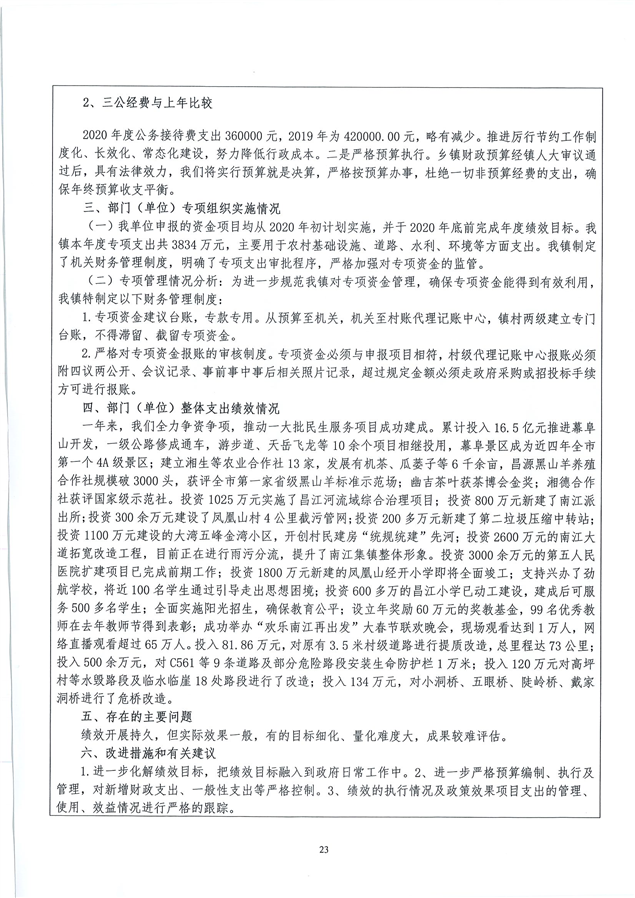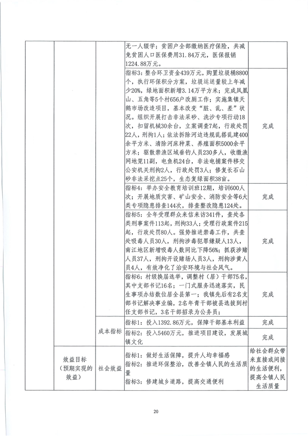 2020年度南江镇人民政府部门决算及整体绩效目标自评表