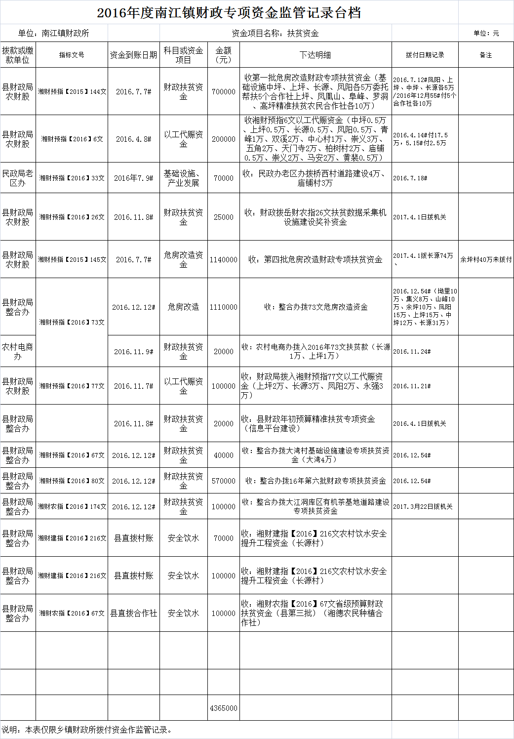 2016年度南江镇财政专项资金监管记录台档