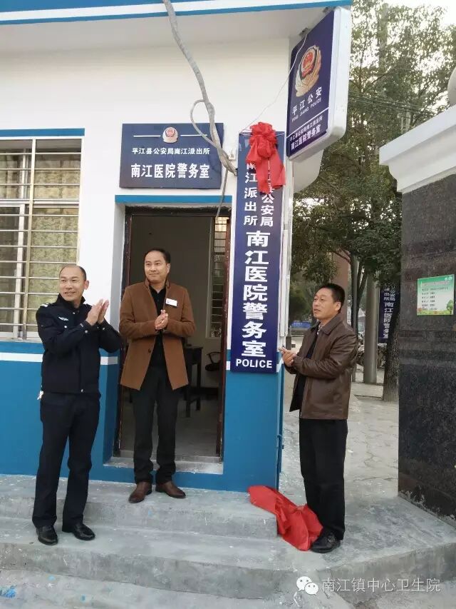 为加强医院安全保卫、维护医院和周边治安秩序,共建“平安医院”,由平江县公安局南江镇派出所与南江镇中心卫生院共同建立的“平江县公安局南江派出所南江医院警务室”今天揭牌成立。这标志着我县首个乡镇卫生院警务室在南江镇中心卫生院正式运行。