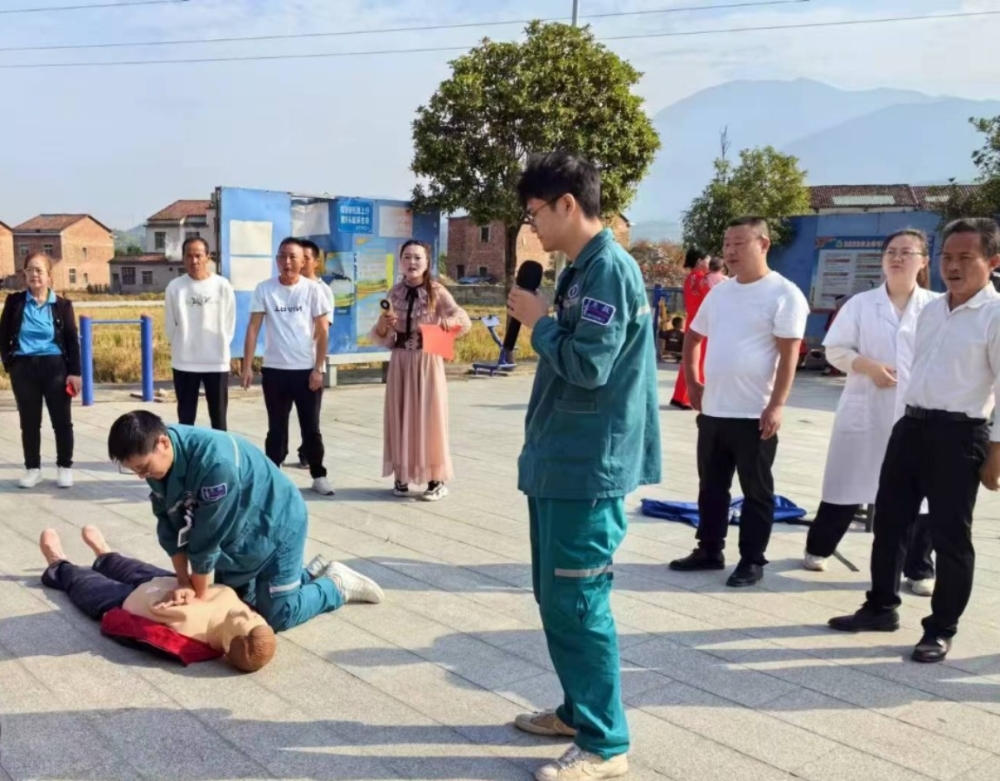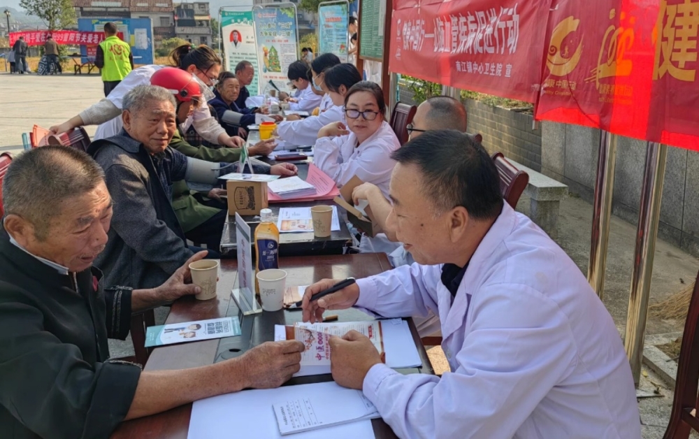 在南江镇昌江村村部,镇中心卫生院医护人员在这里为老年人义诊。活动现场人头攒动,医护人员为每位老人进行了常规的身体检查,并提供了非常贴心的老年慢性病问诊等各项服务,示范讲解了心肺复苏等急救措施。此外,根据老人的健康状况,医生们还就正确服药、保持良好的生活习惯和合理的饮食习惯给予细致耐心的指导,让老人们感到满满的关怀。