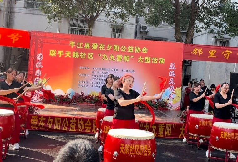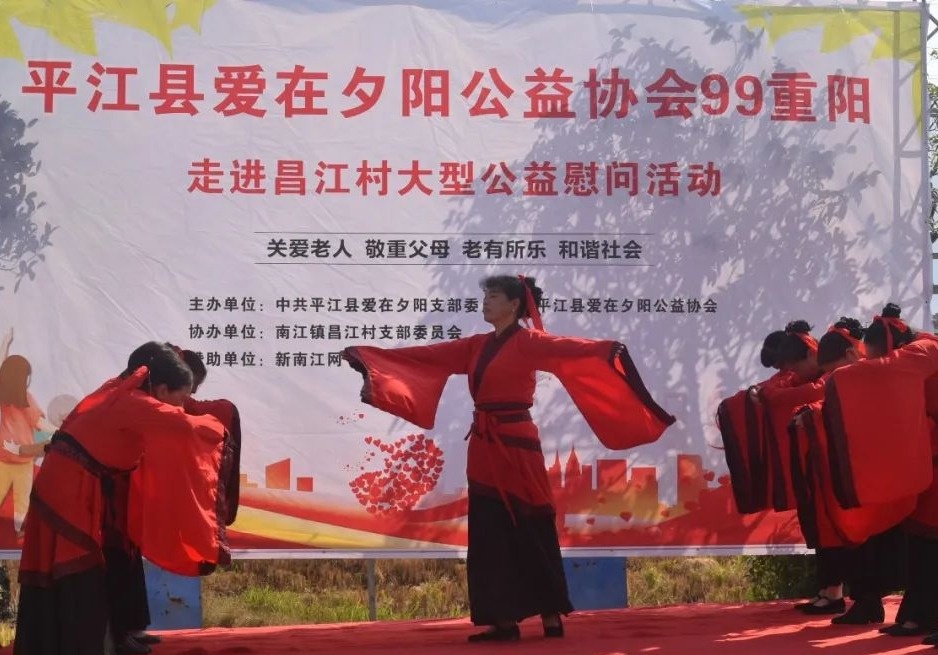 天鹅社区、昌江村联合爱在夕阳公益协会,通过精心策划,在村民广场上举办了文艺汇演。演出现场,锣鼓队、广场舞队、戏曲团等轮番上场,丰富多彩的文艺节目不仅营造了喜庆热闹的节日氛围,更赢取了老人们洋溢的笑声及阵阵掌声。协会的志愿者们则始终忙碌在文艺汇演过程中,他们为老人们搬座位、倒水等,让老人们感受到节日的温馨。