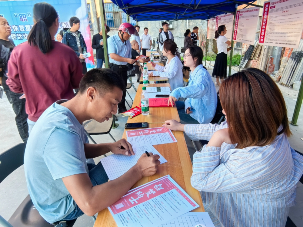 为进一步拓宽受灾群众就业增收渠道,助力灾后恢复重建,9月24日,由平江县人民政府主办、平江县人社局承办的“平江县2024年灾后恢复重建百日奋战系列之巡回招聘活动”在南江镇顺利举行。南江镇积极宣传对接,组织辖区内32个村(社区)有就业需求的群众参加此次招聘活动,活动现场气氛热烈,求职群众热情高涨。