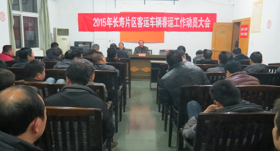 为进一步强化客运车辆源头管理,增强客车驾驶员的安全意识和责任意识,确保2015年春运期间辖区道路交通安全、畅通。2月1日晚,长寿镇安全办联合长寿镇交警队、交管站、吉祥客运公司经理,在长寿镇二楼会议室召开客运车辆春运安全动员大会,企业负责人及车辆驾驶员代表50余人参加会议。